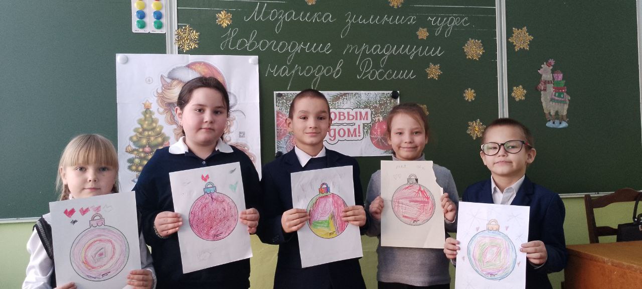 Сегодня в нашей школе с Суккулово для обучающихся 1 классов советник директора совместно с активистами «Движения Первых» провели увлекательное мероприятие «Мозаика зимних чудес: новогодние традиции народов России»