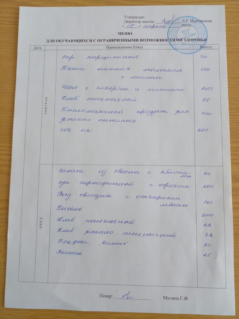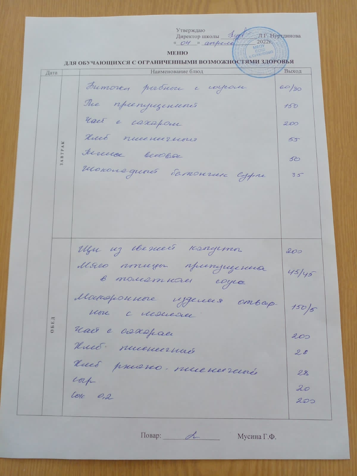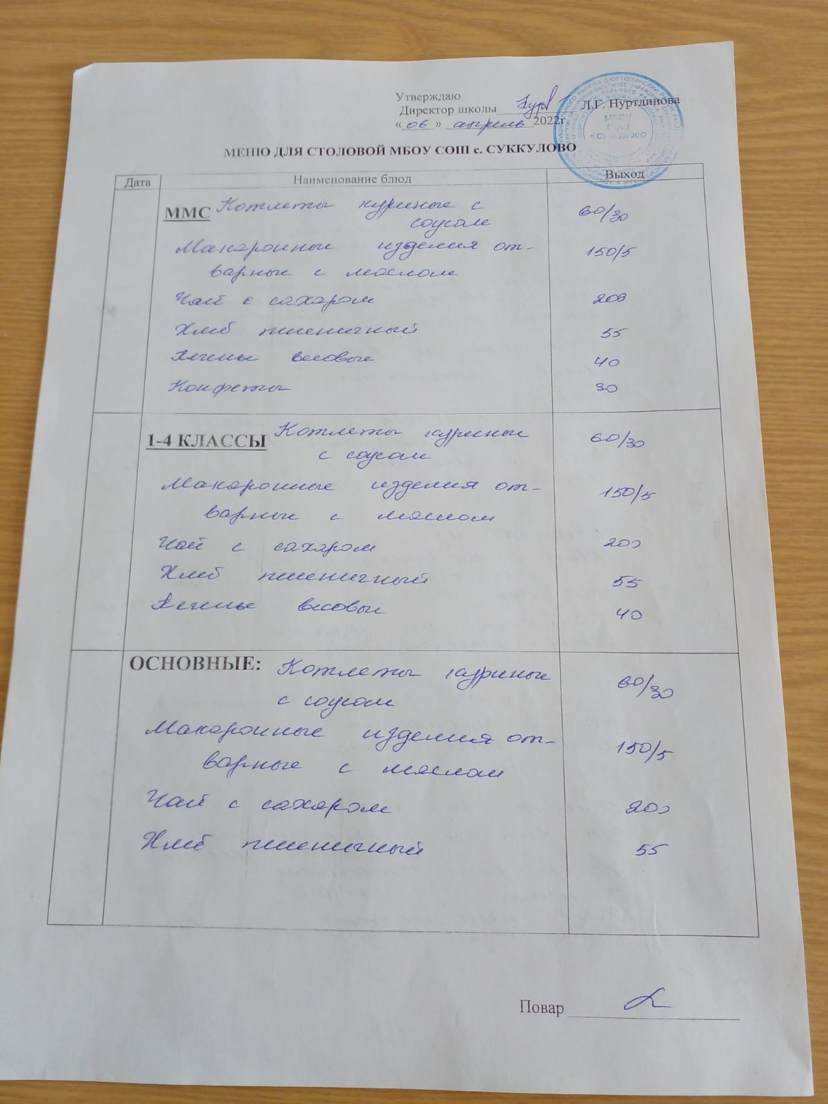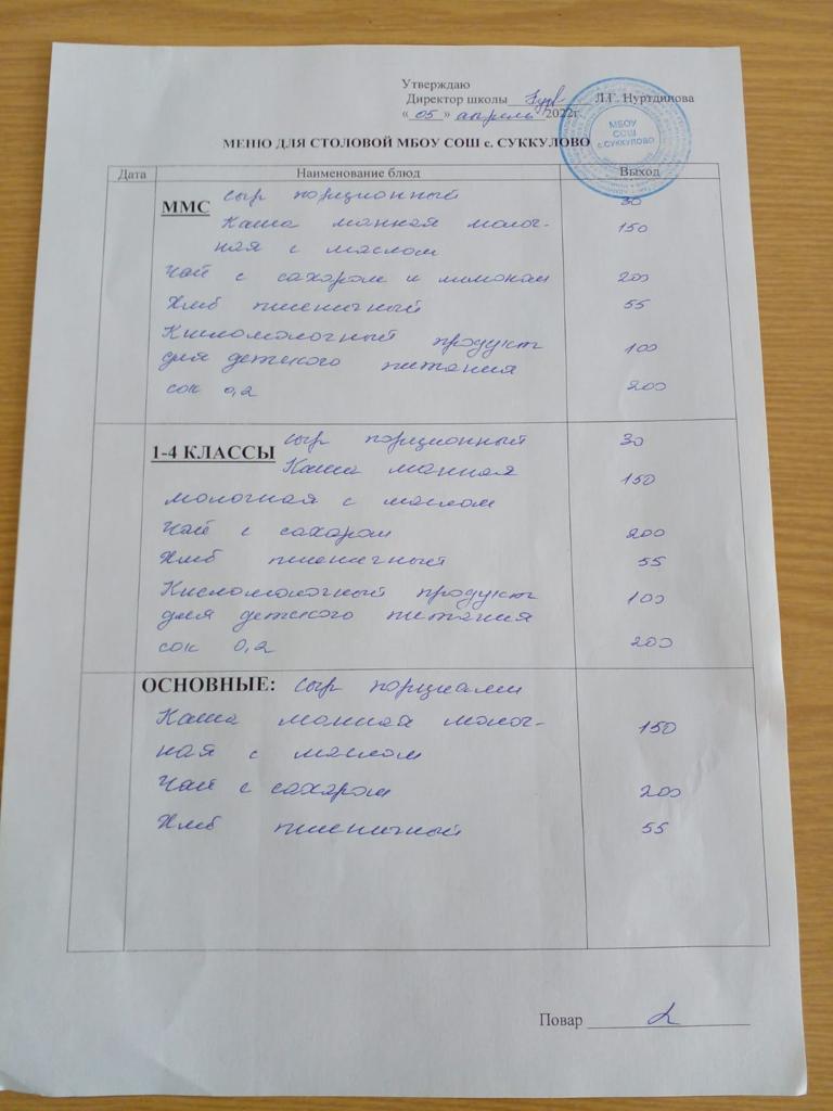 (Меню для обучающихся из ММС, 1-4 классов, основные)