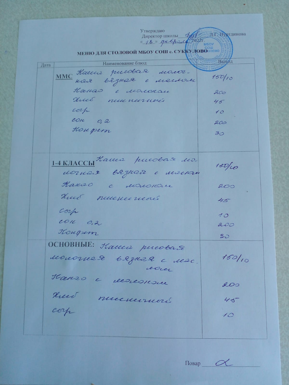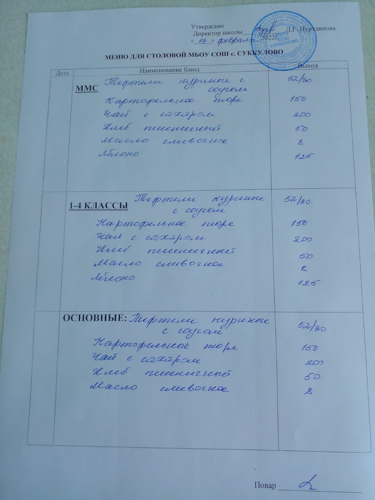 (Меню для обучающихся из ММС, 1-4 классов, основные)