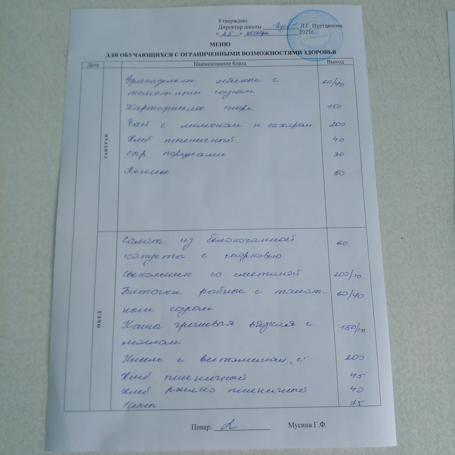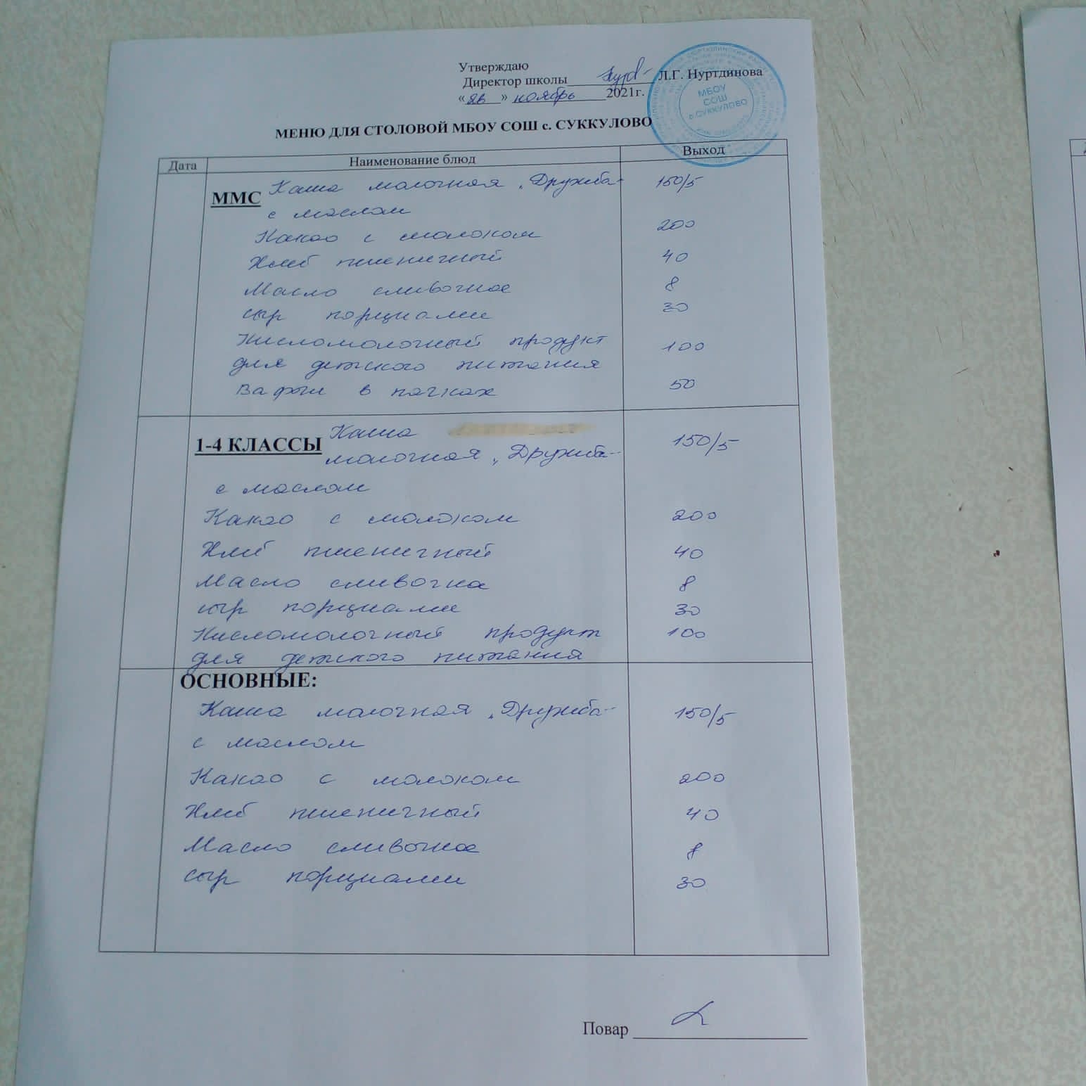 (Меню для обучающихся из ММС, 1-4 классов, основные)