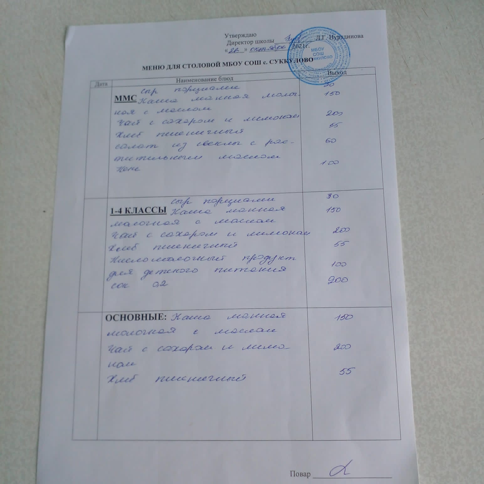 (Меню на 21.10.2021г. для обучающихся из ММС, 1-4 классы, основные)
