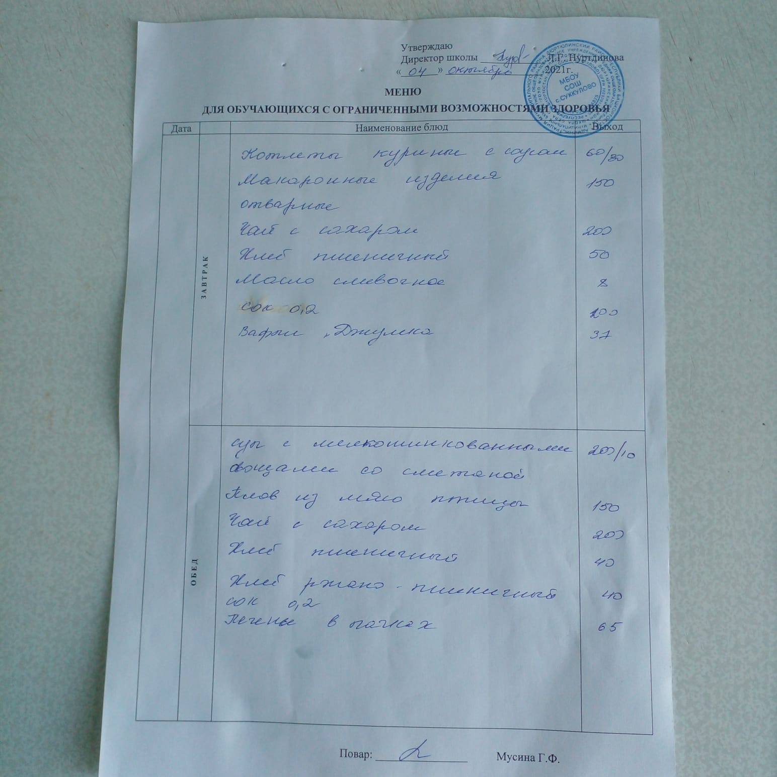(Меню на 04.10.2021г. для детей с ОВЗ)