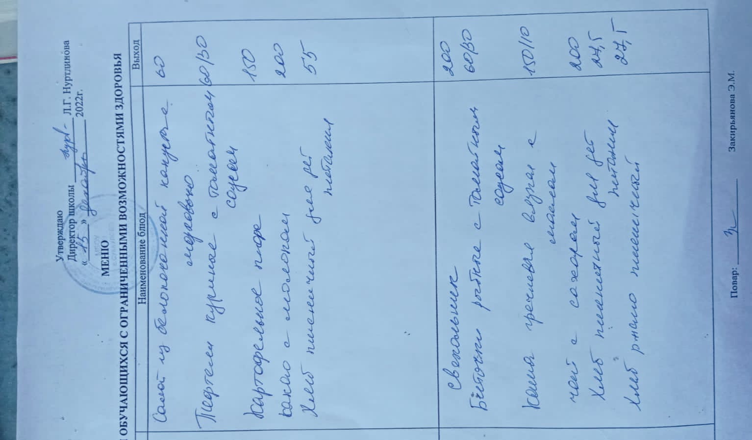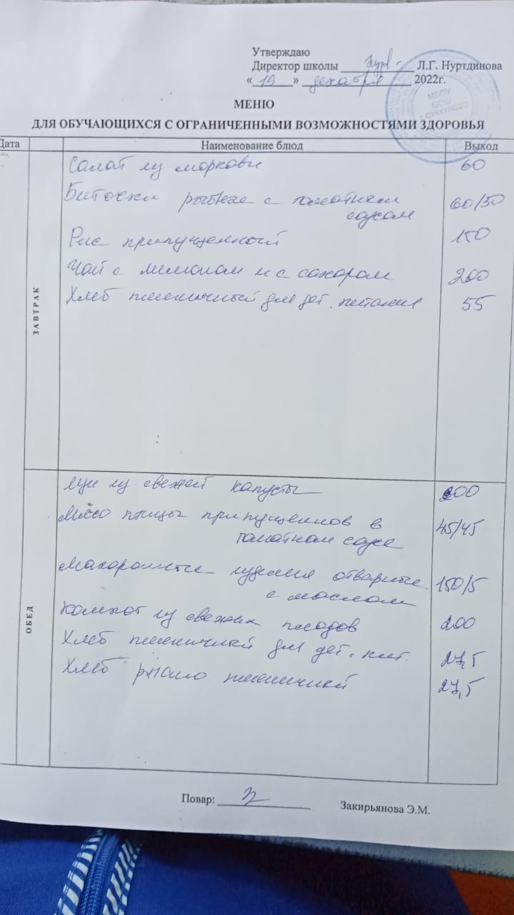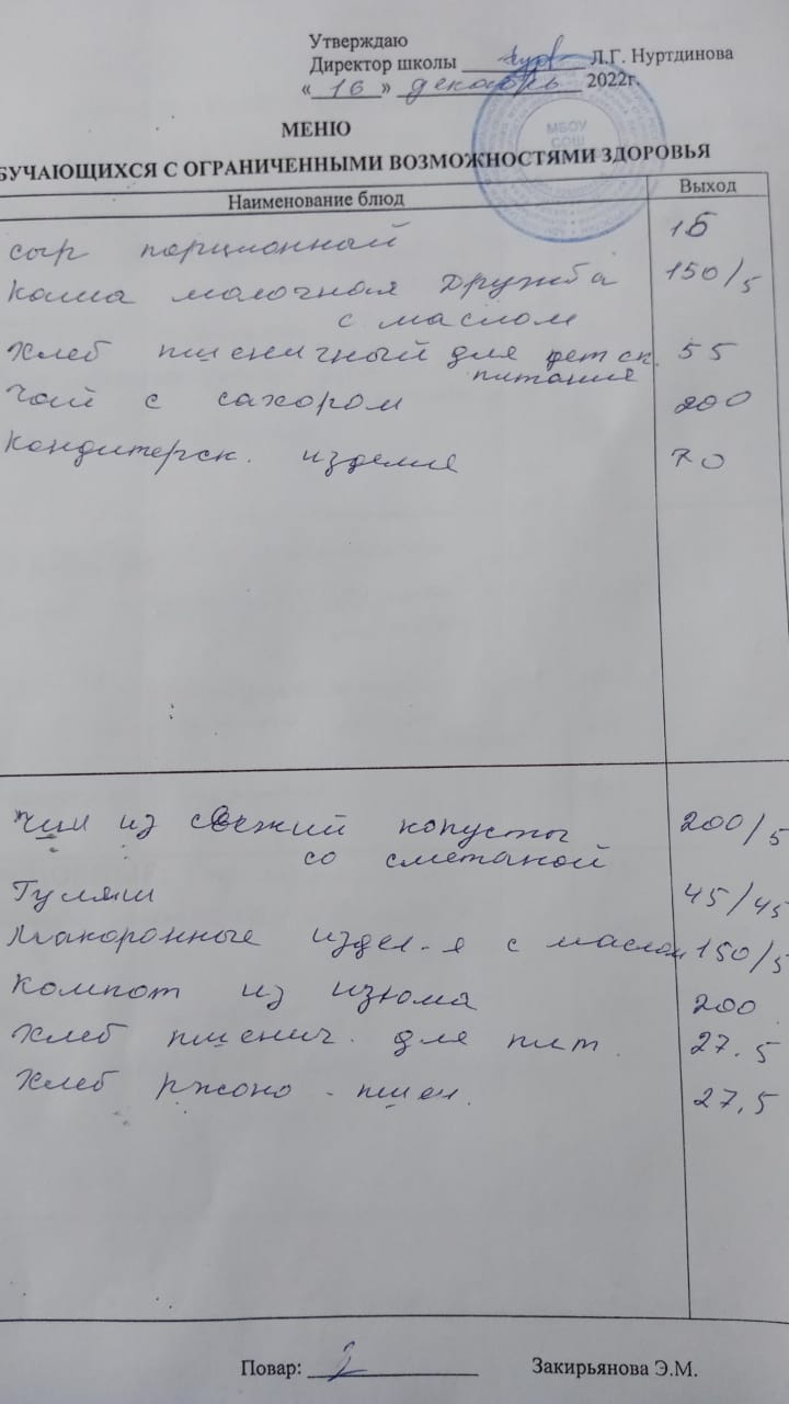 (Меню для обучающихся с ОВЗ)