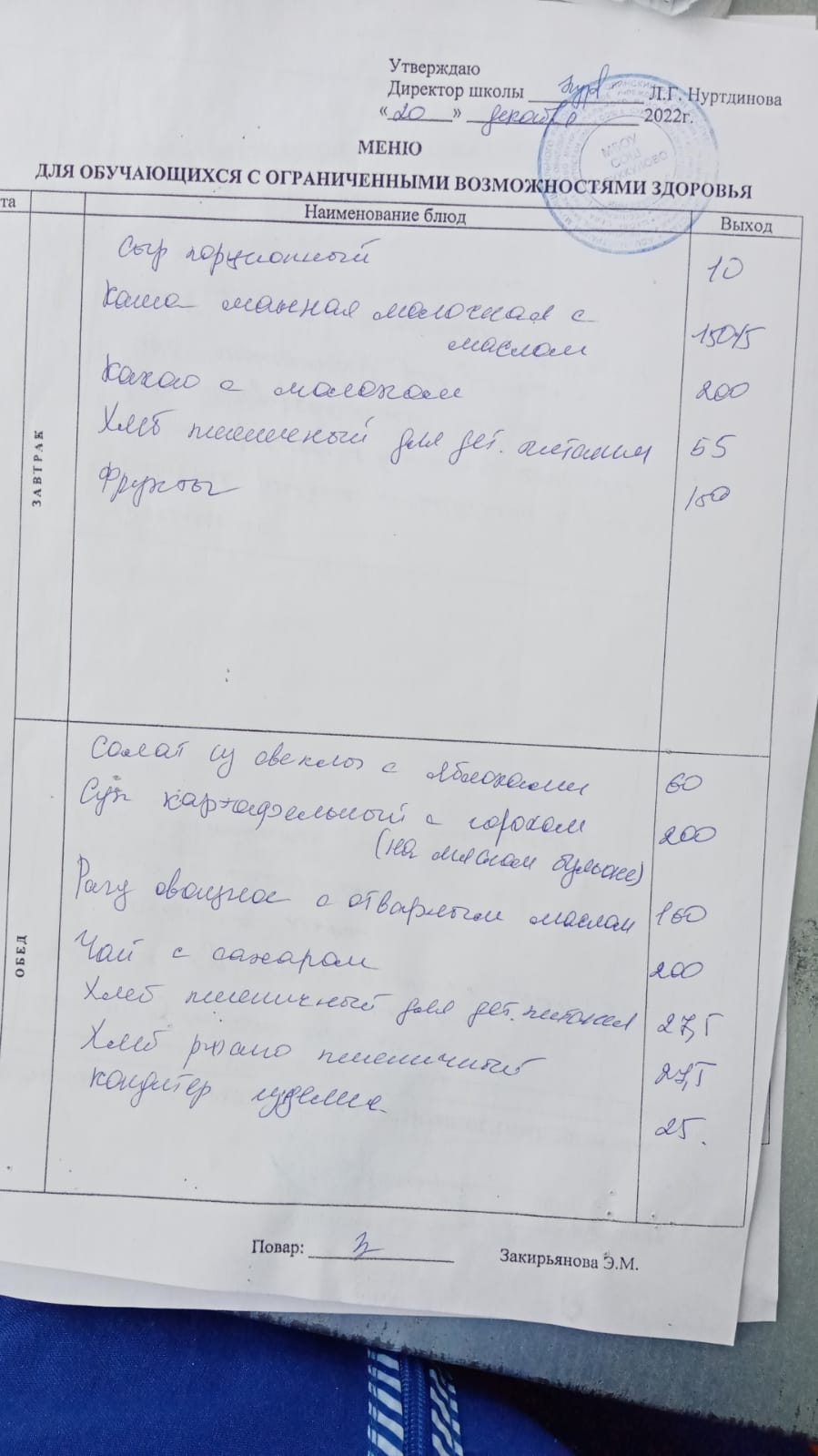 (Завтрак для обучающихся из ОВЗ)