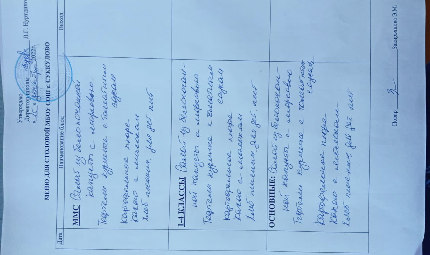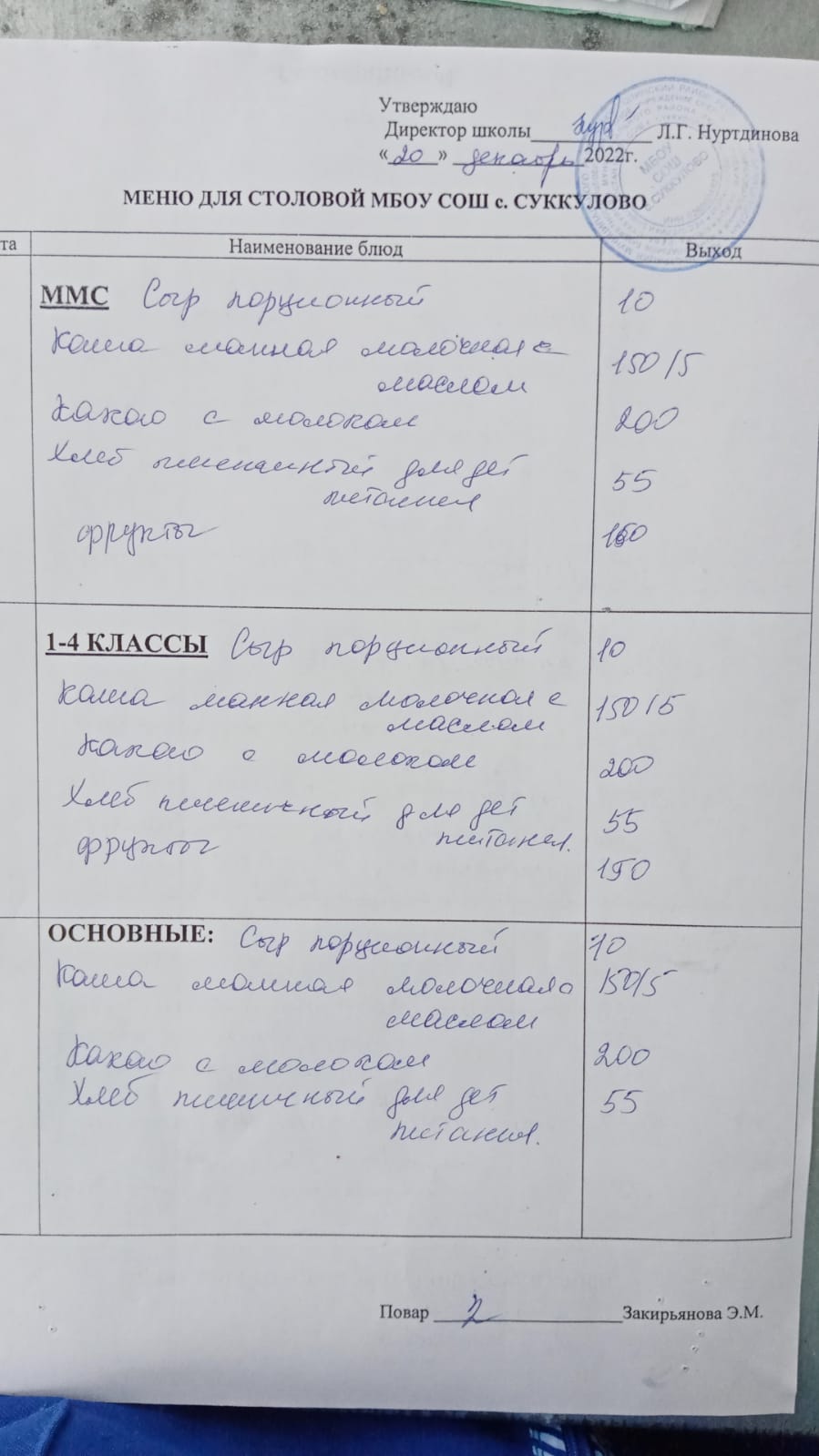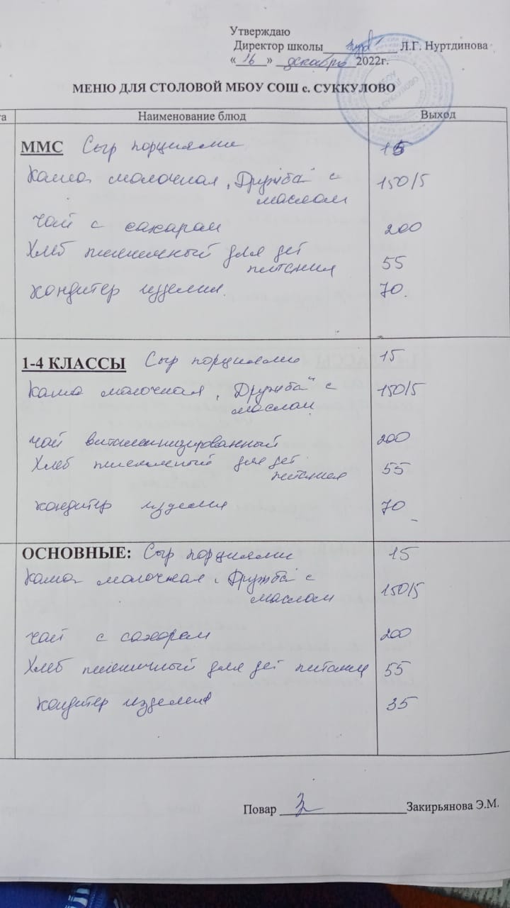 (Меню для обучающихся из ММС, 1-4 классов, основные)