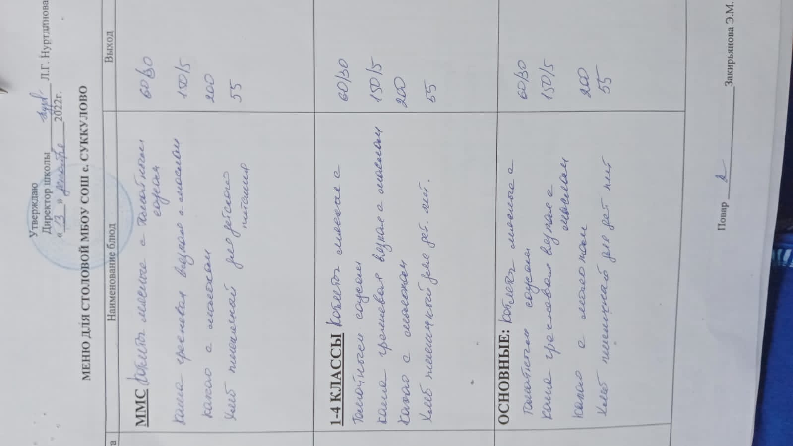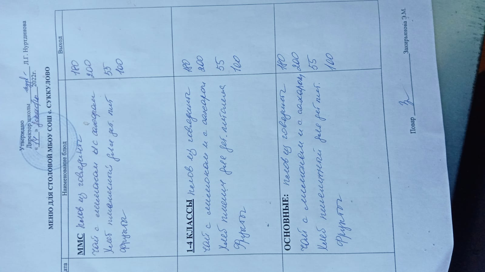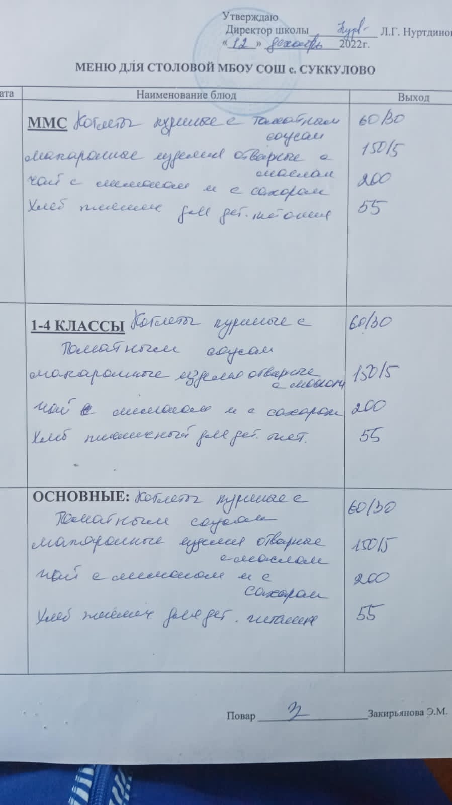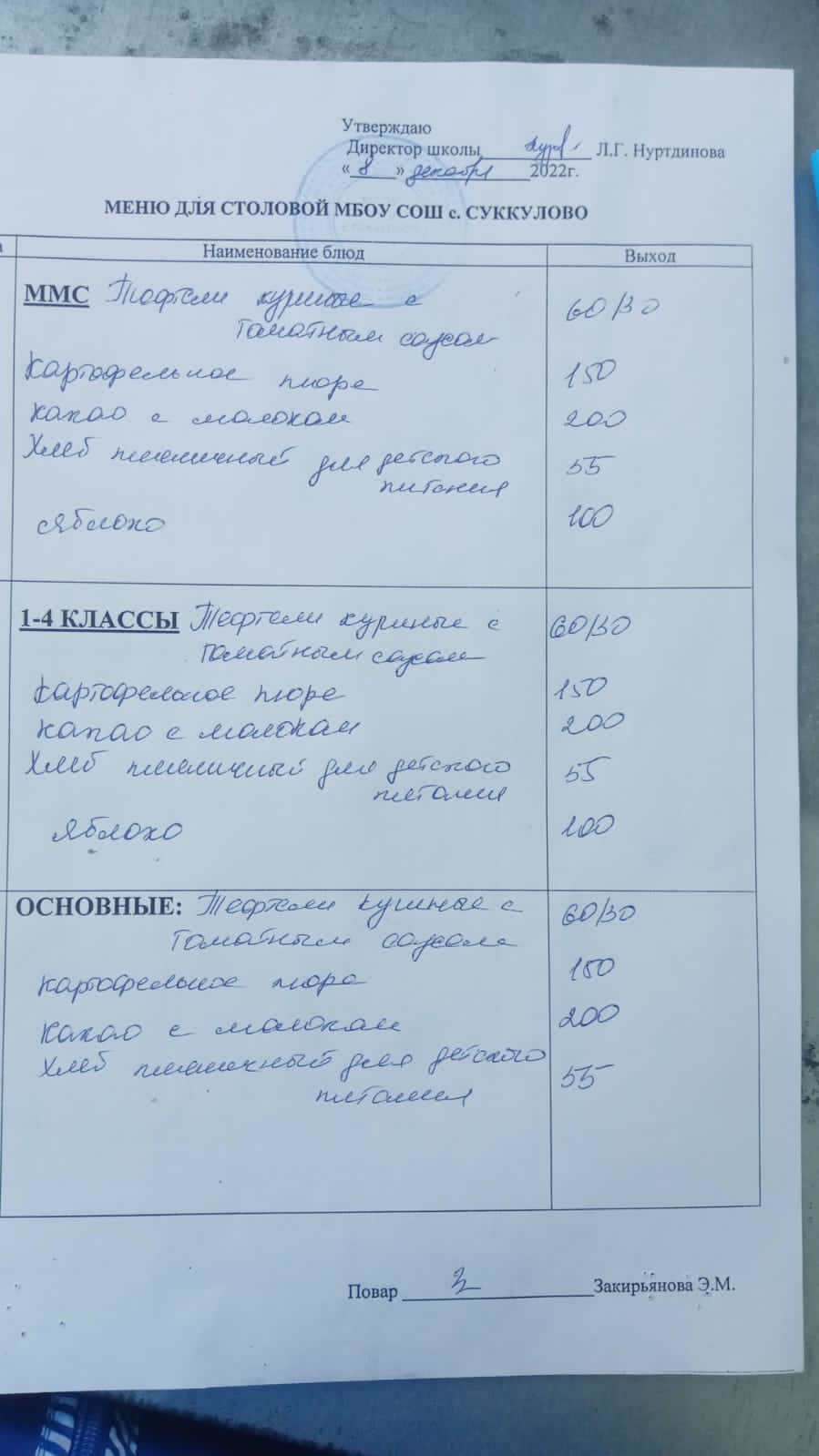 (Меню для обучающихся из ММС, 1-4 классов, основные)