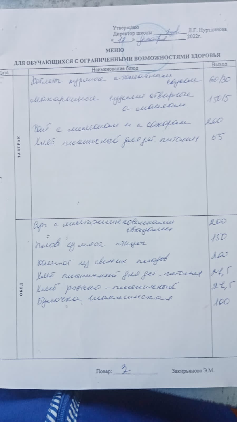 (Обед для обучающихся из ОВЗ)