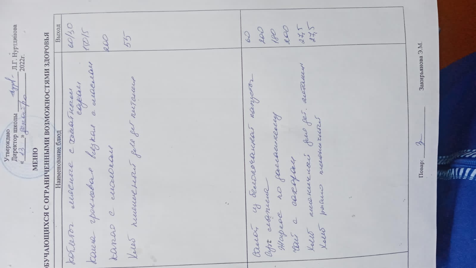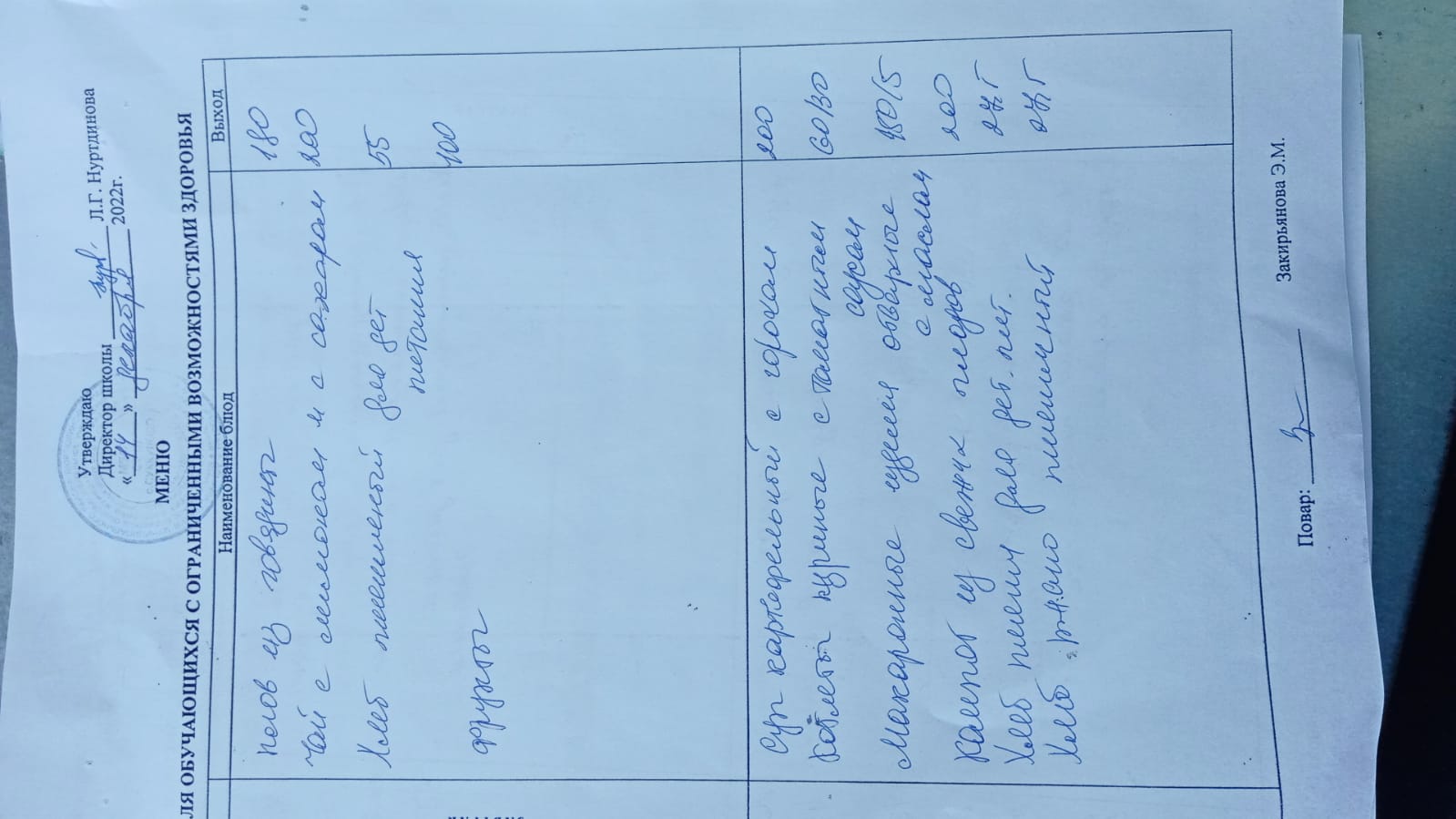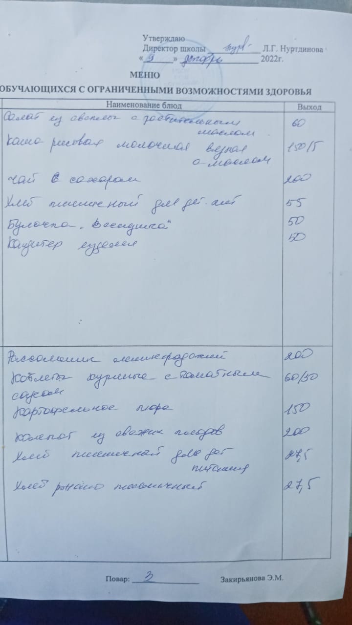 (Меню для обучающихся с ОВЗ)