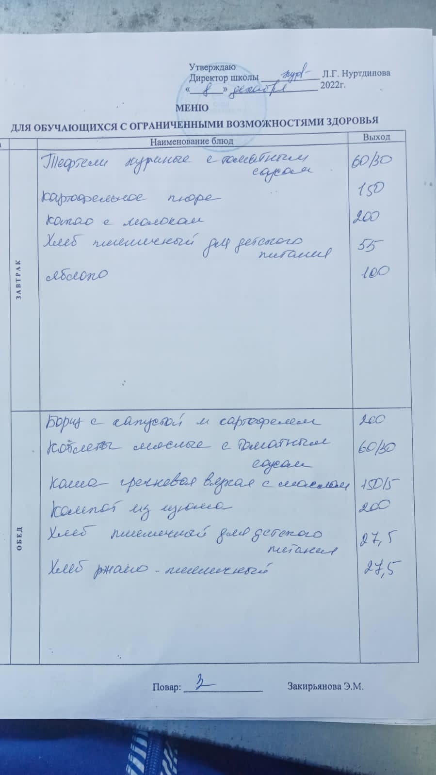 (Завтрак для обучающихся из ОВЗ)