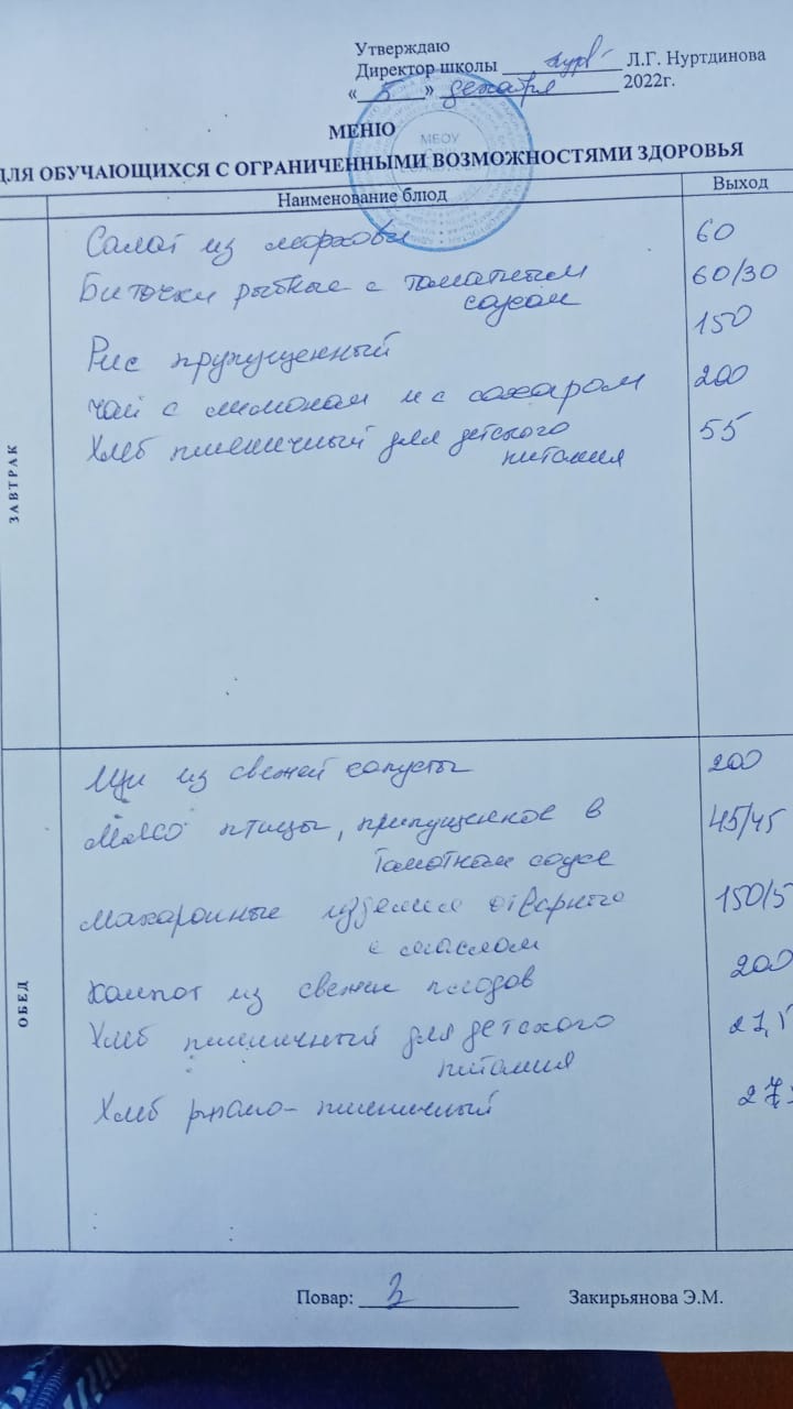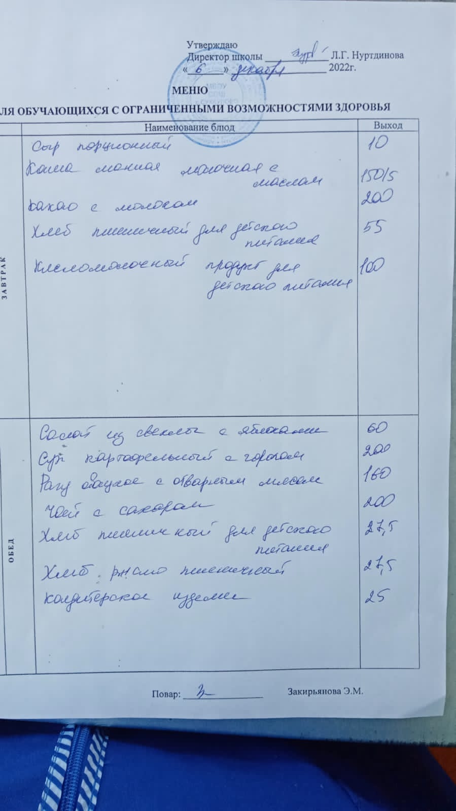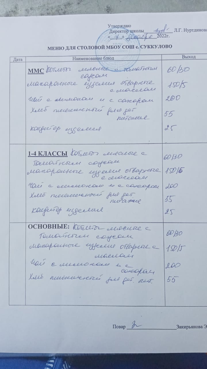 (Меню для обучающихся из ММС, 1-4 классов, основные)