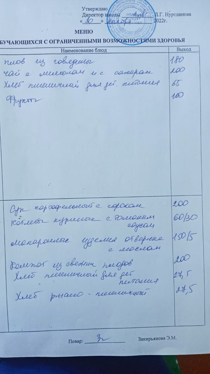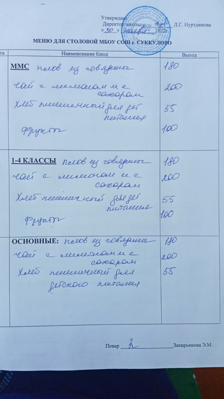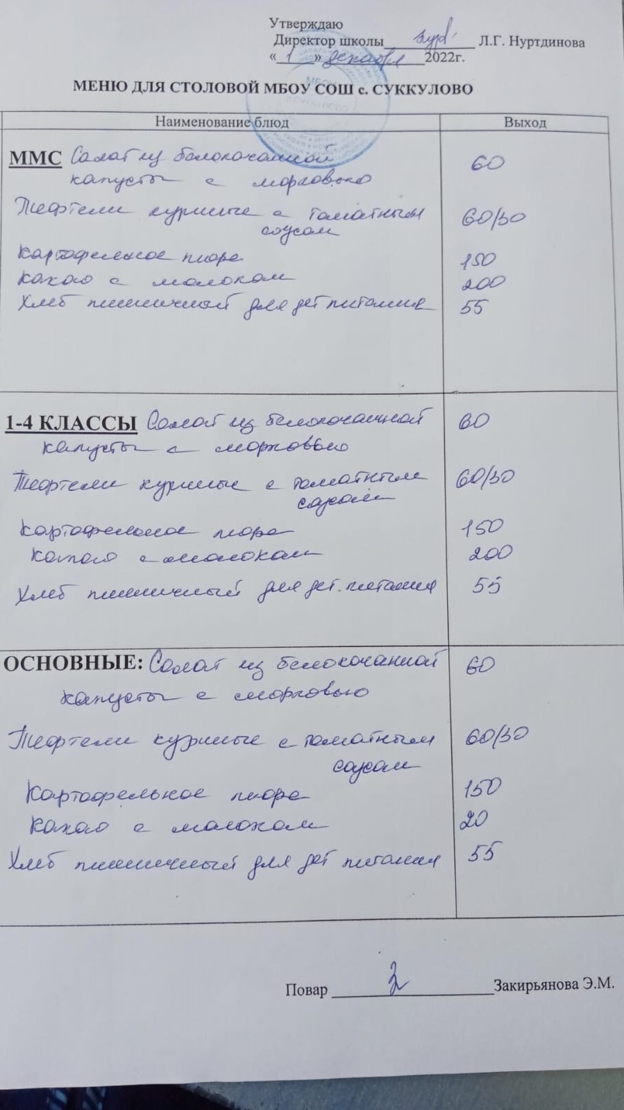 (Меню для обучающихся из ММС, 1-4 классов, основные)