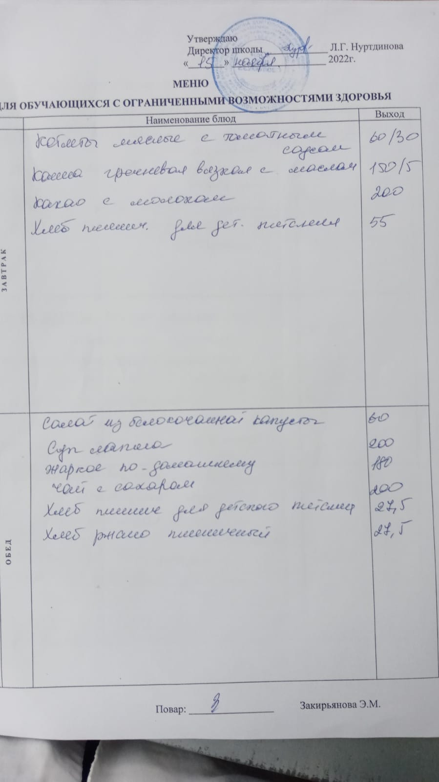 (Меню для обучающихся из ММС, 1-4 классов, основные)
