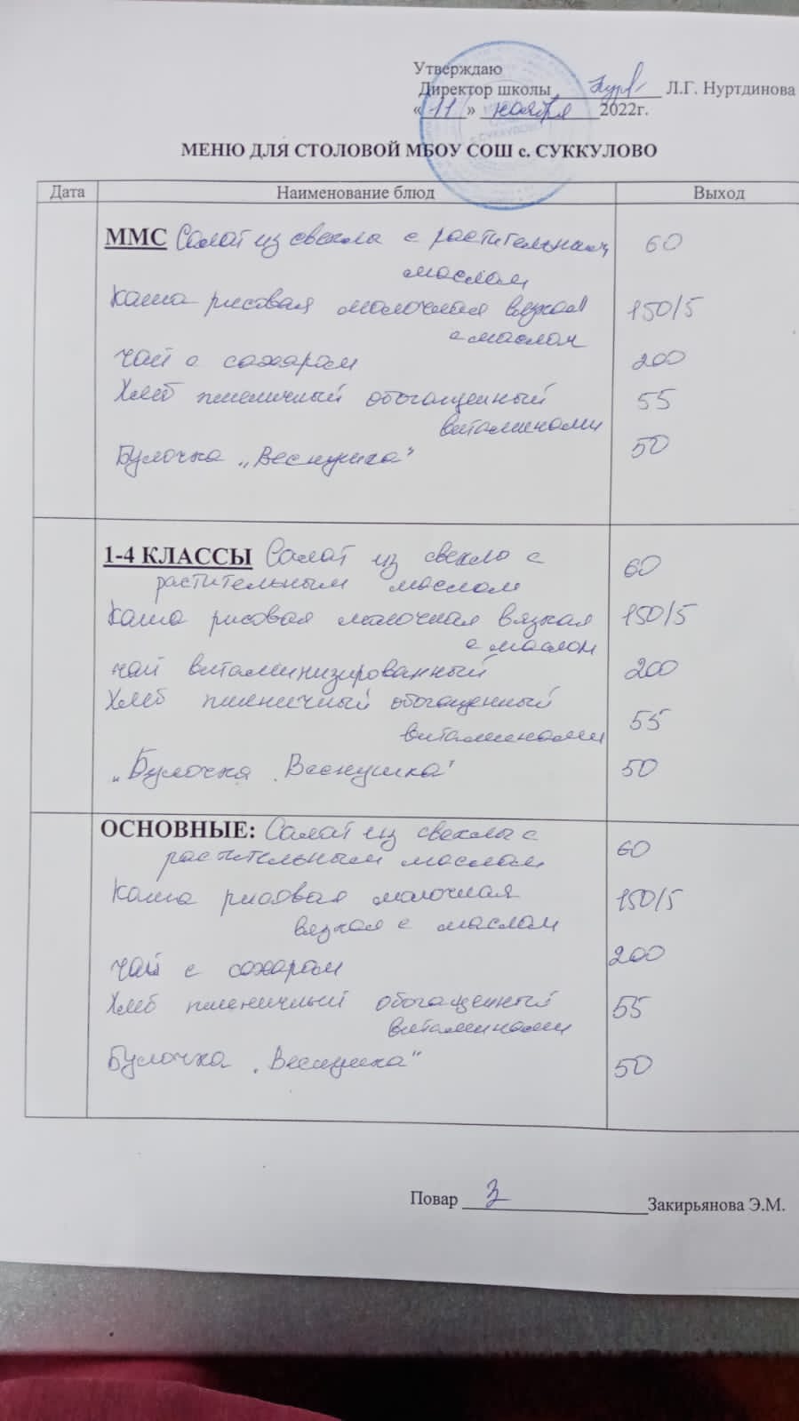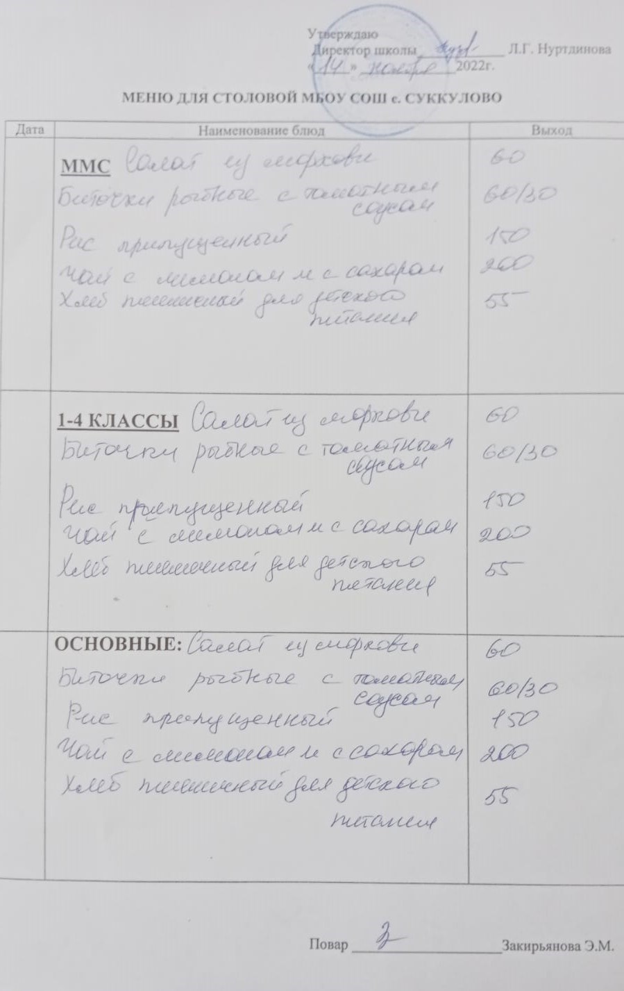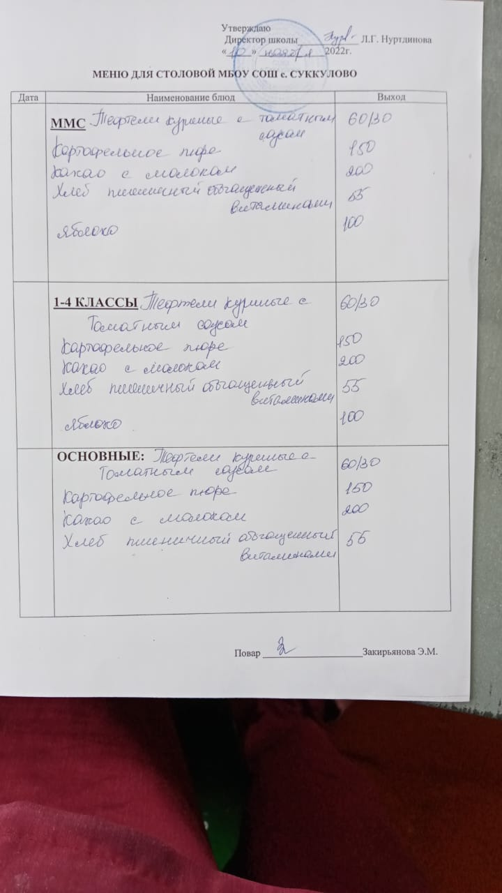 (Меню для обучающихся из ММС, 1-4 классов, основные)