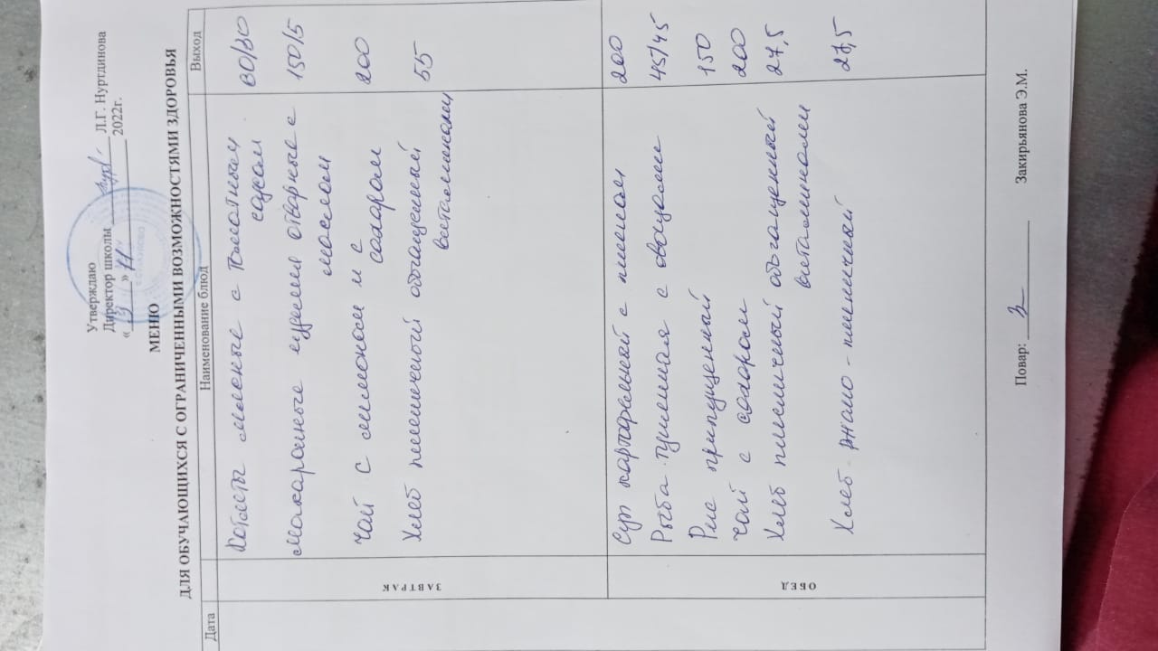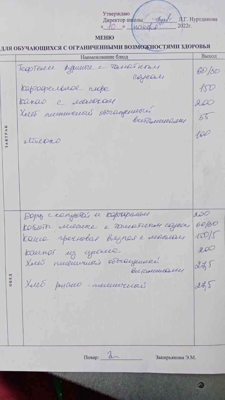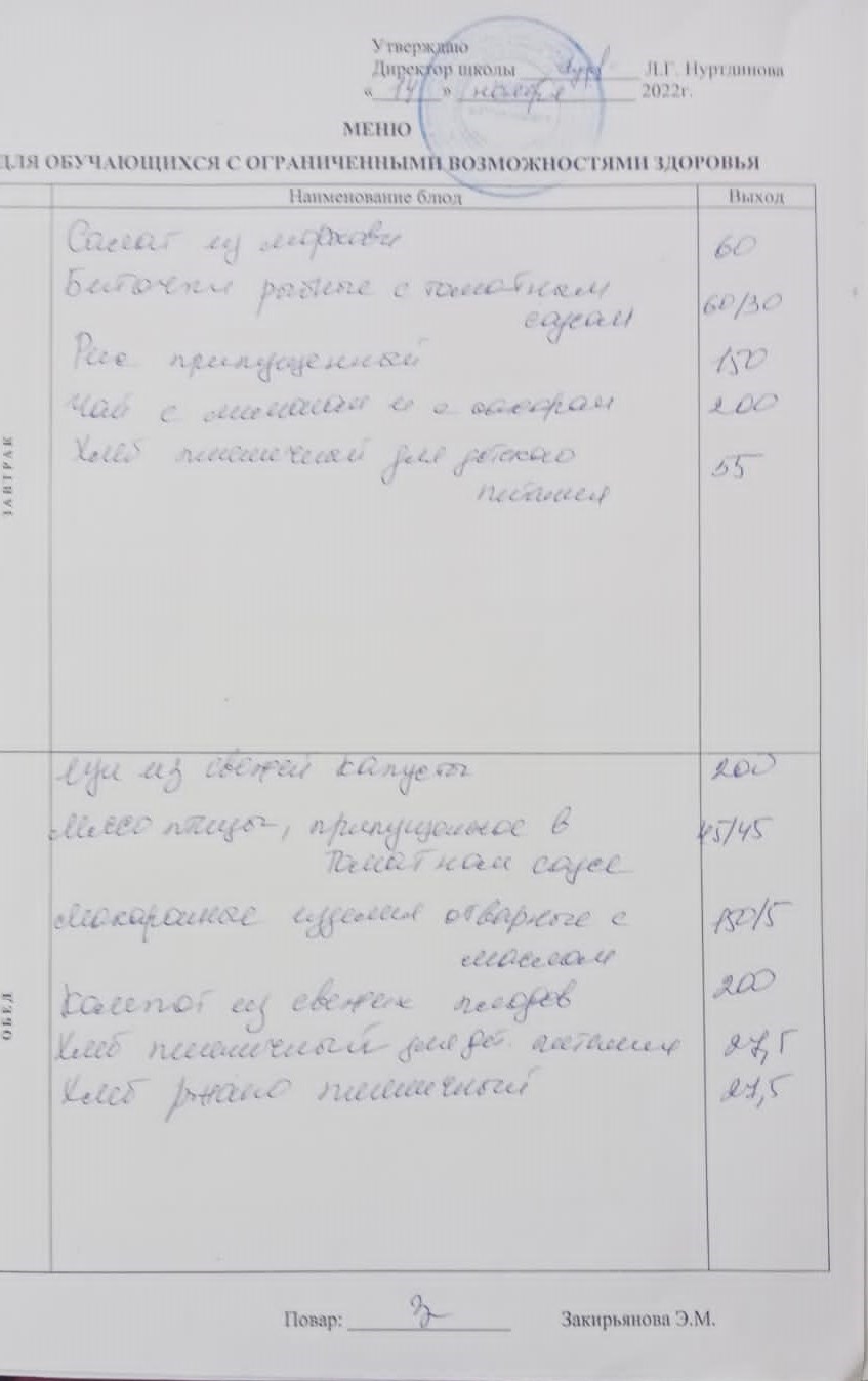 (Меню для обучающихся с ОВЗ)
