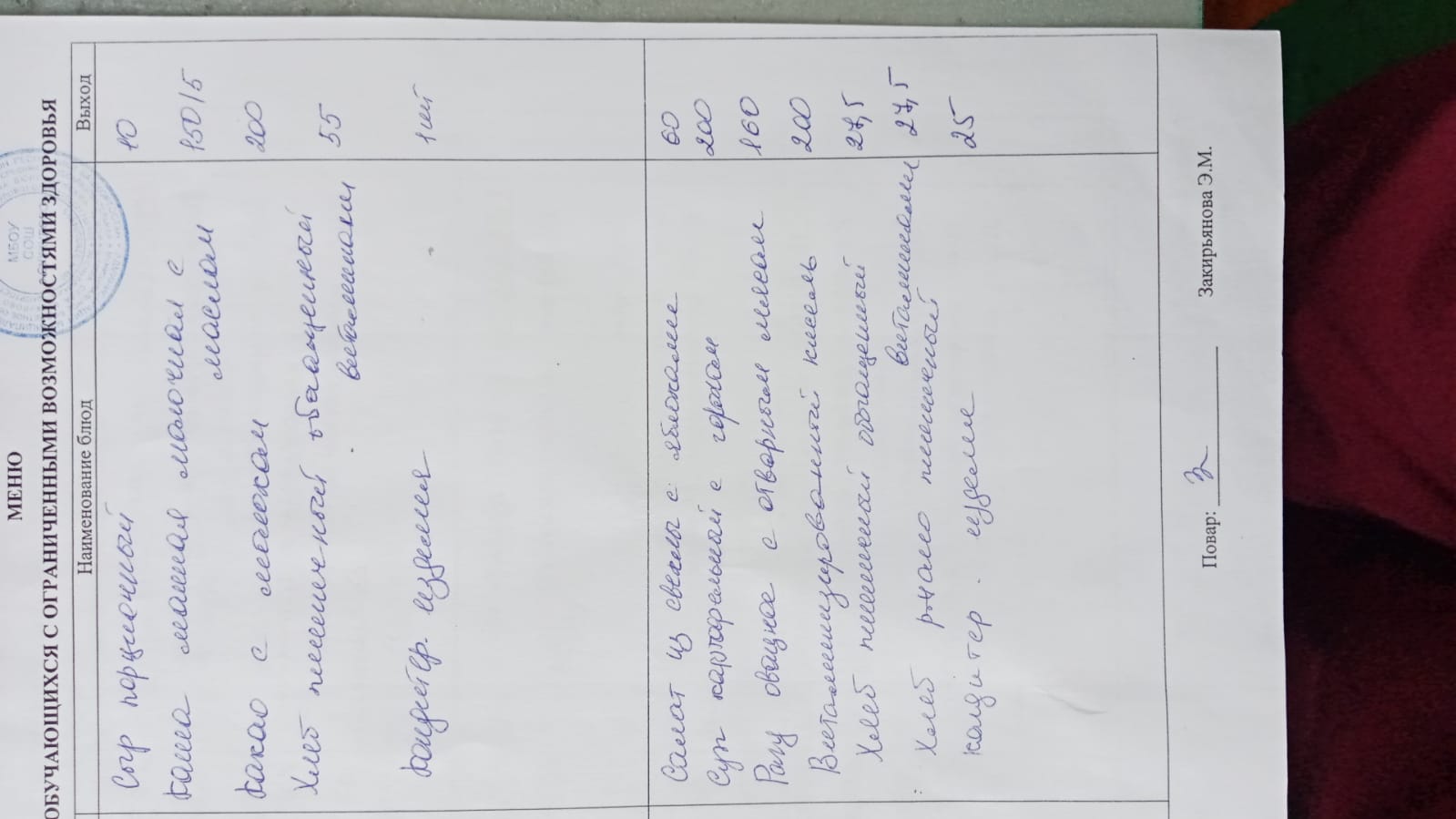 (Меню для обучающихся из ММС, 1-4 классов, основные)