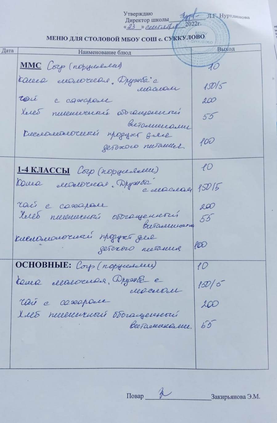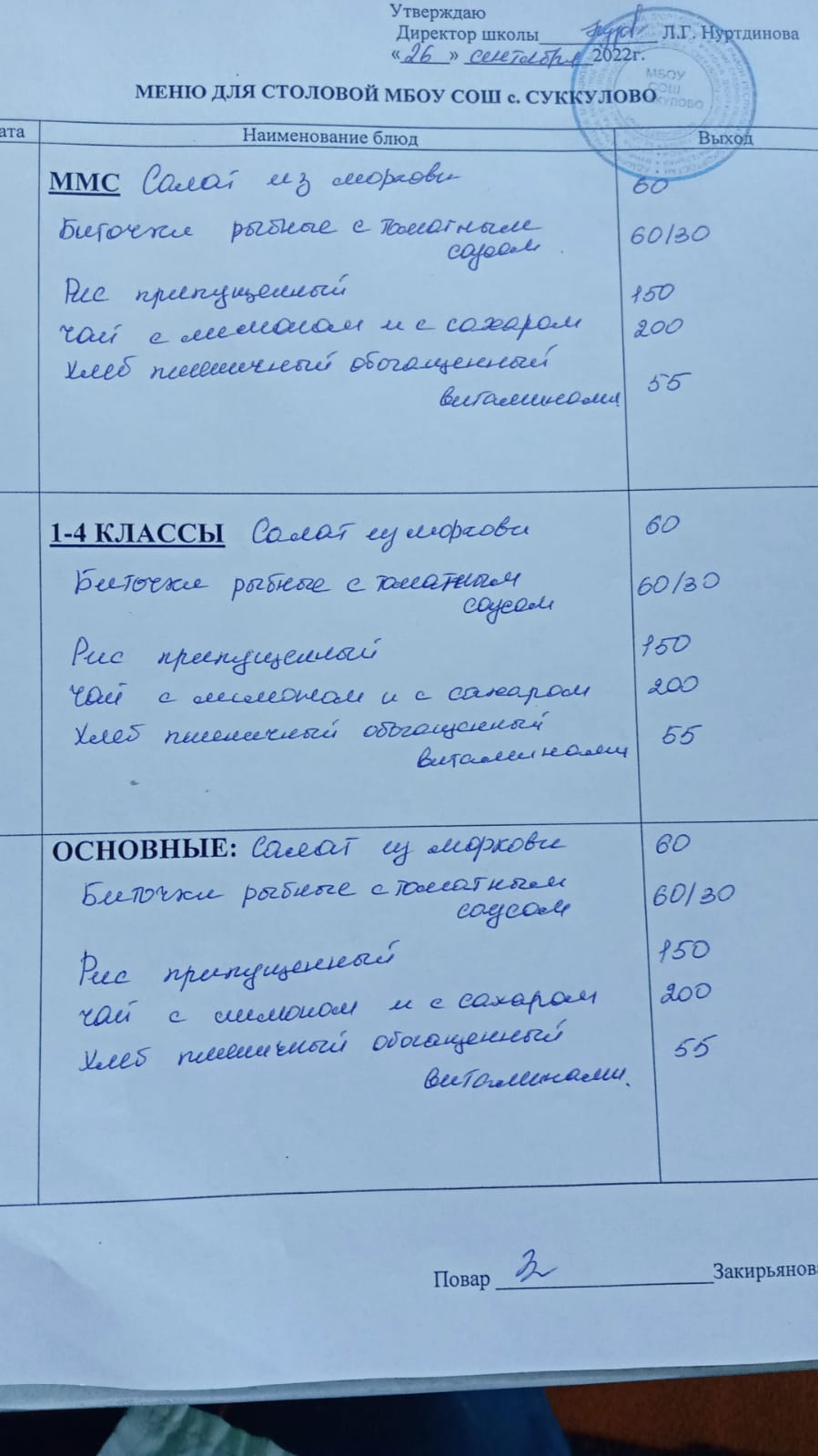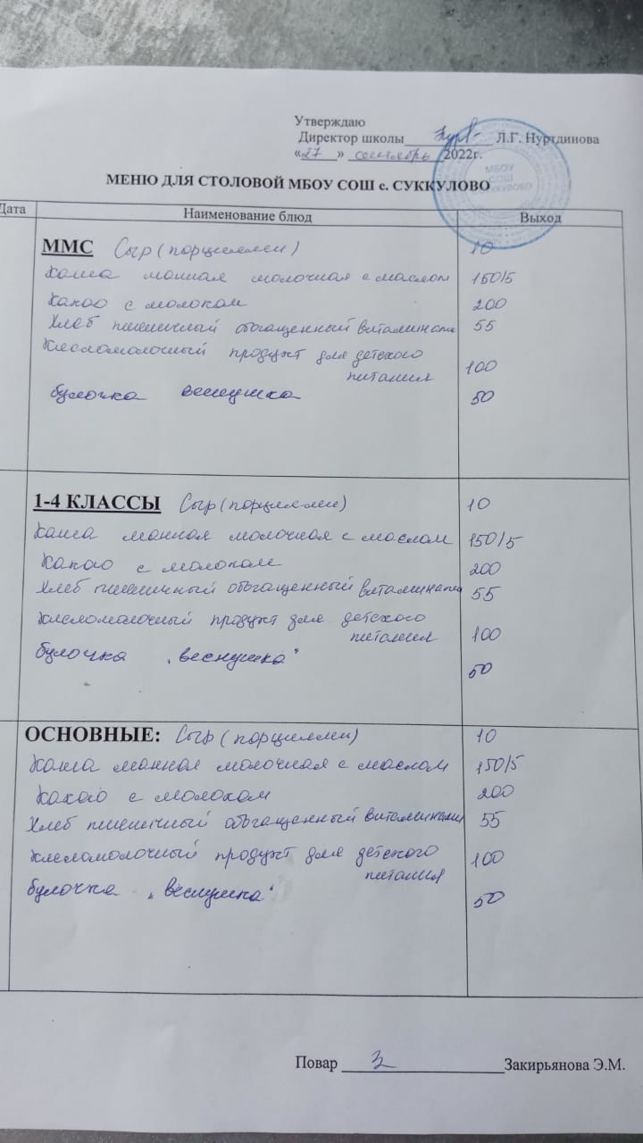 (Меню для обучающихся из ММС, 1-4 классов, основные)