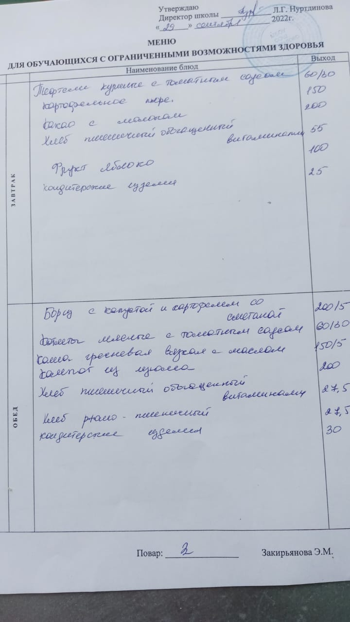 (Меню для обучающихся с ОВЗ)