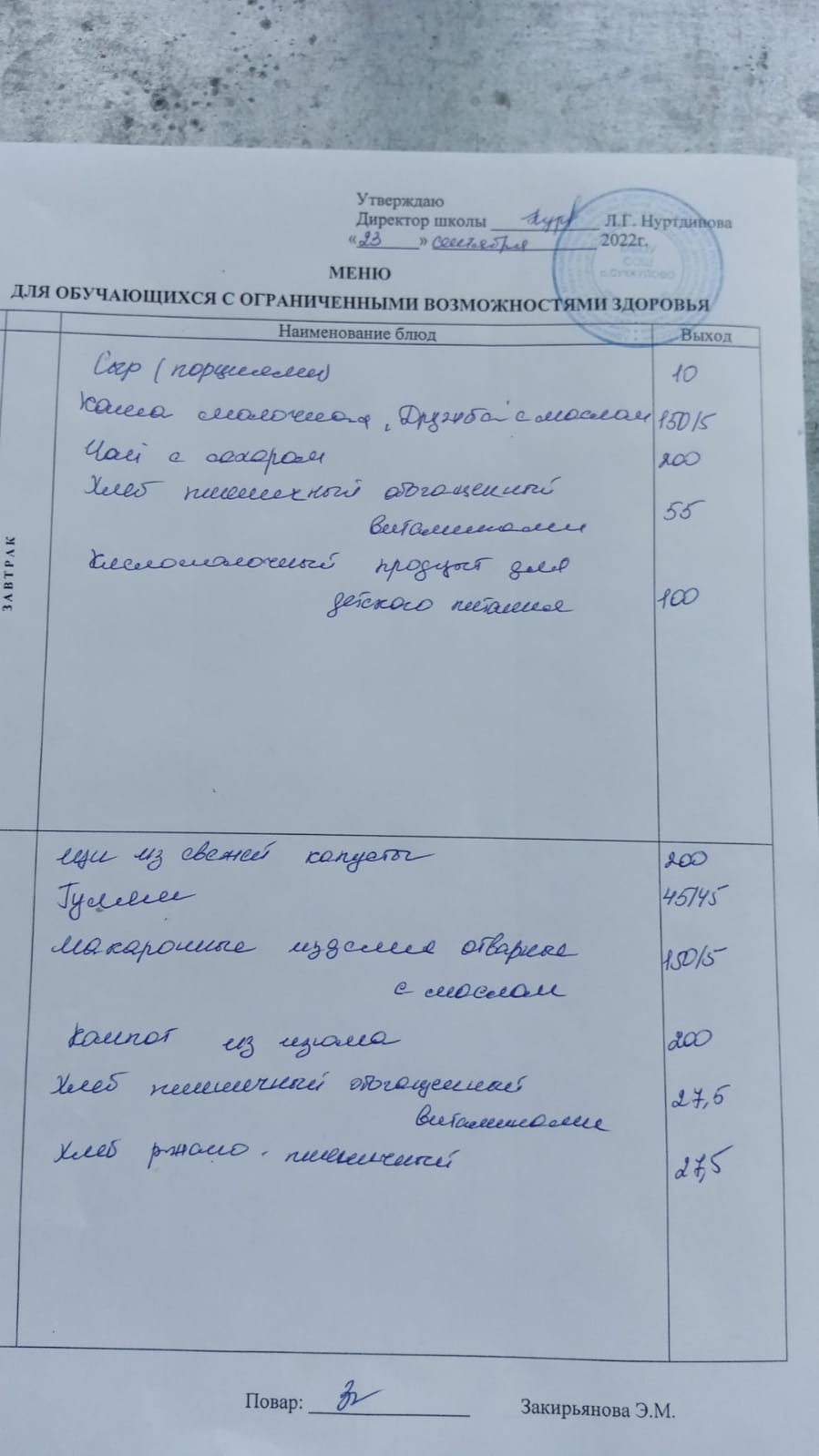 (Завтрак для обучающихся с ОВЗ)