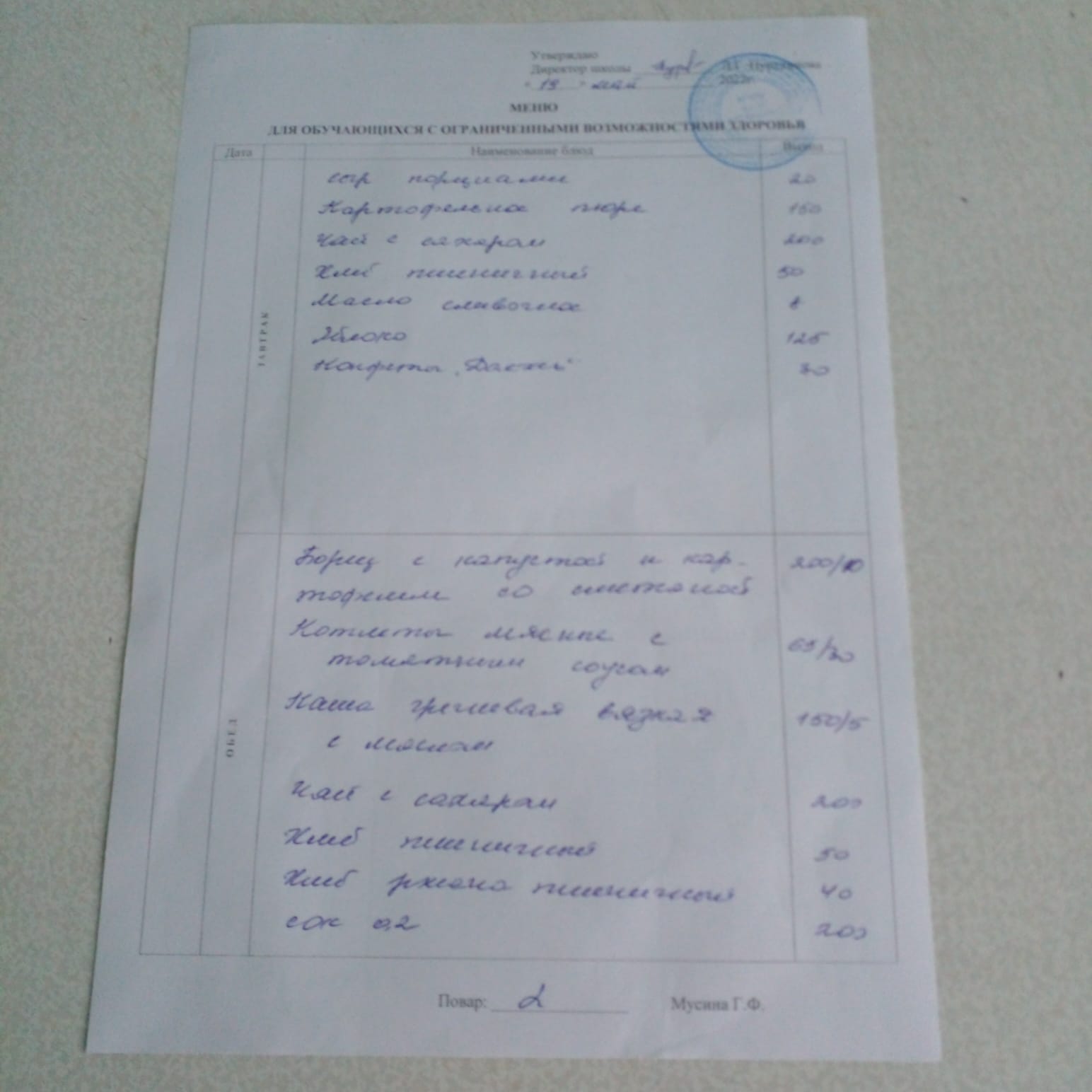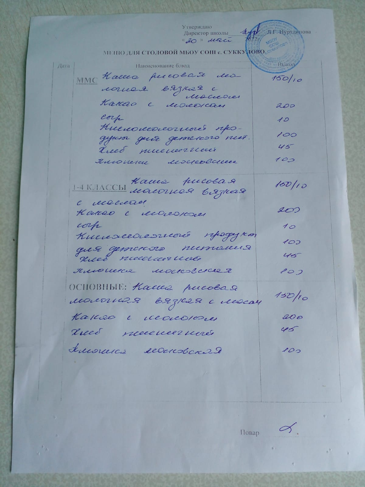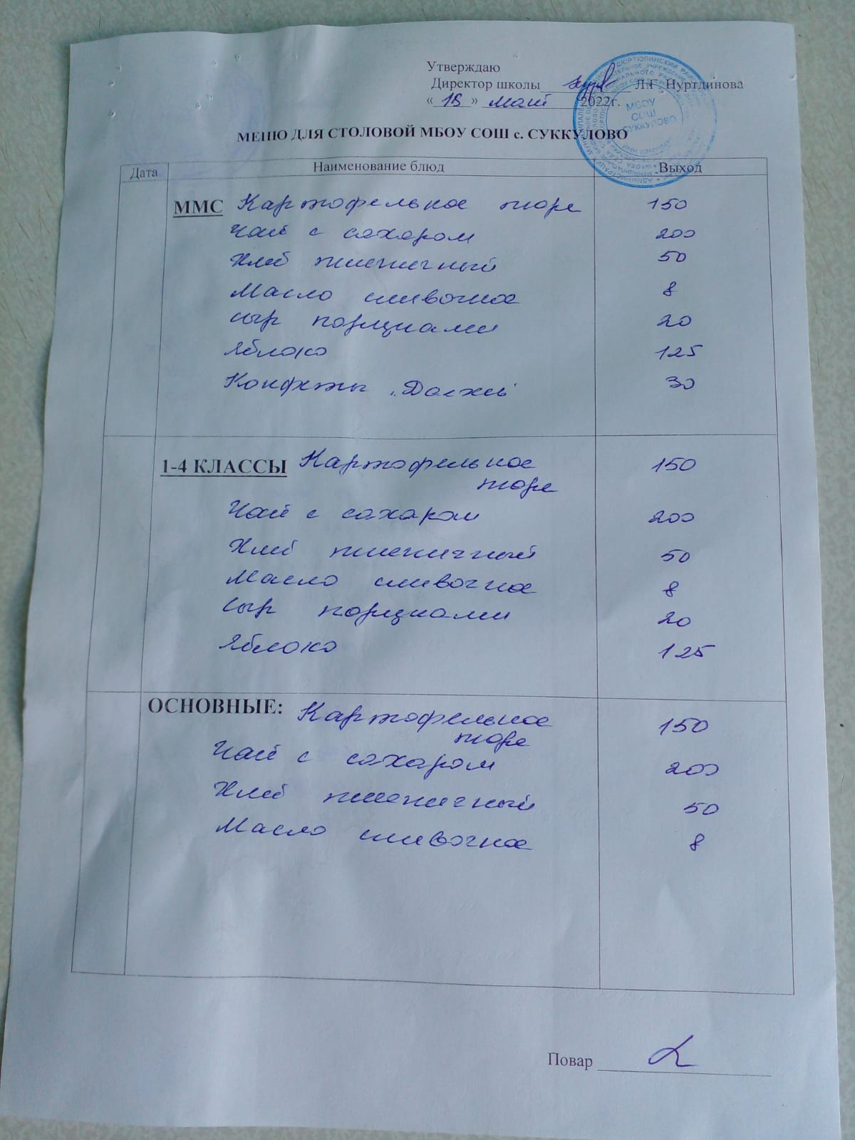 (Меню для обучающихся из ММС, 1-4 классов, основные)