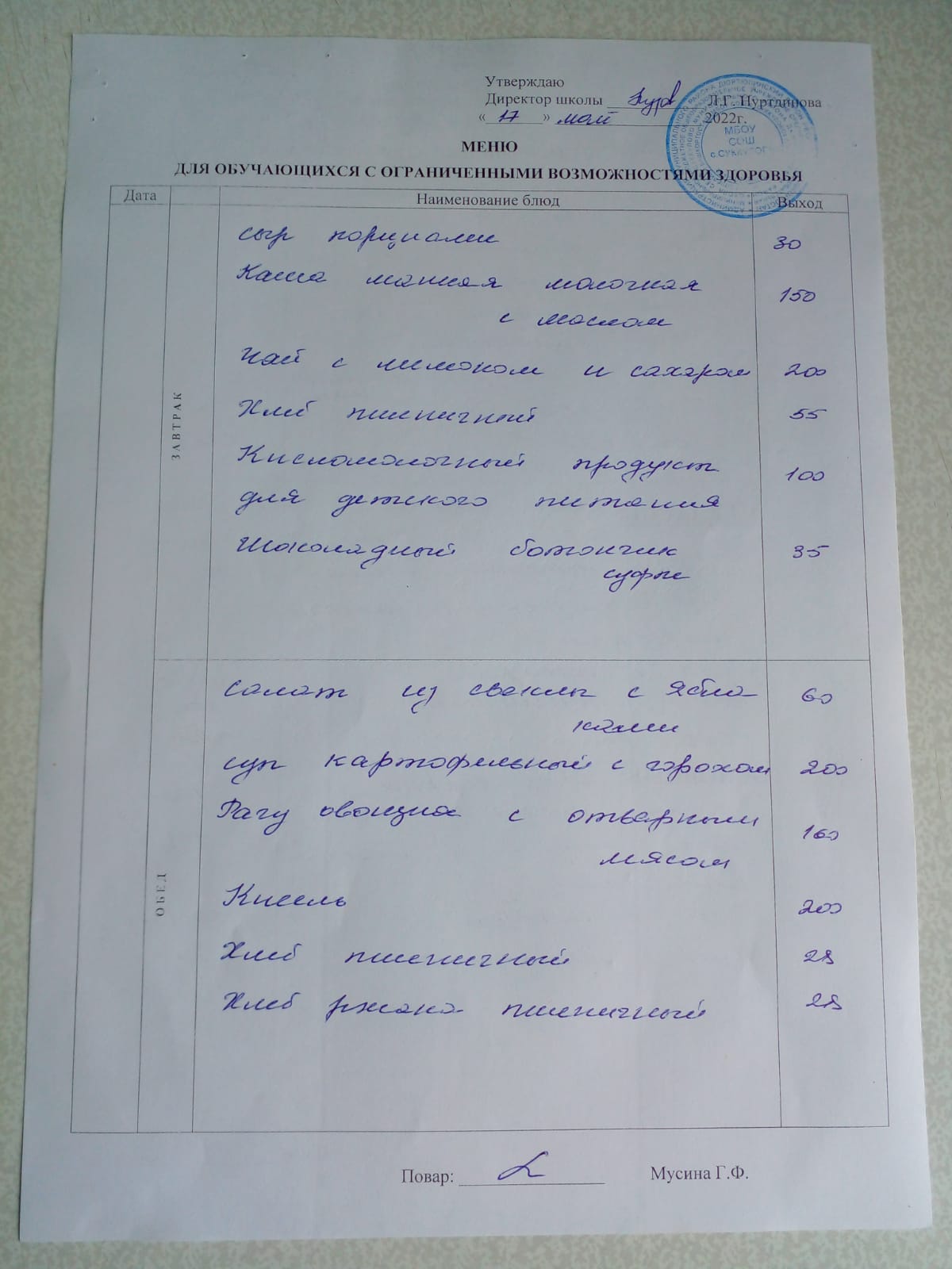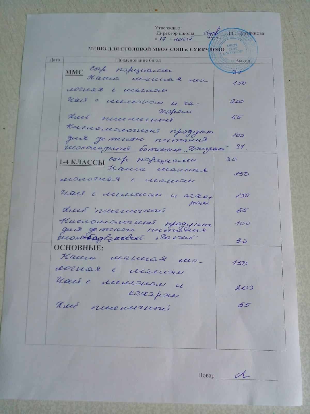 (Меню для обучающихся из ММС, 1-4 классов, основные)
