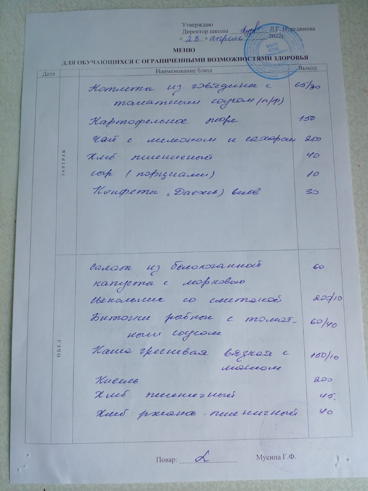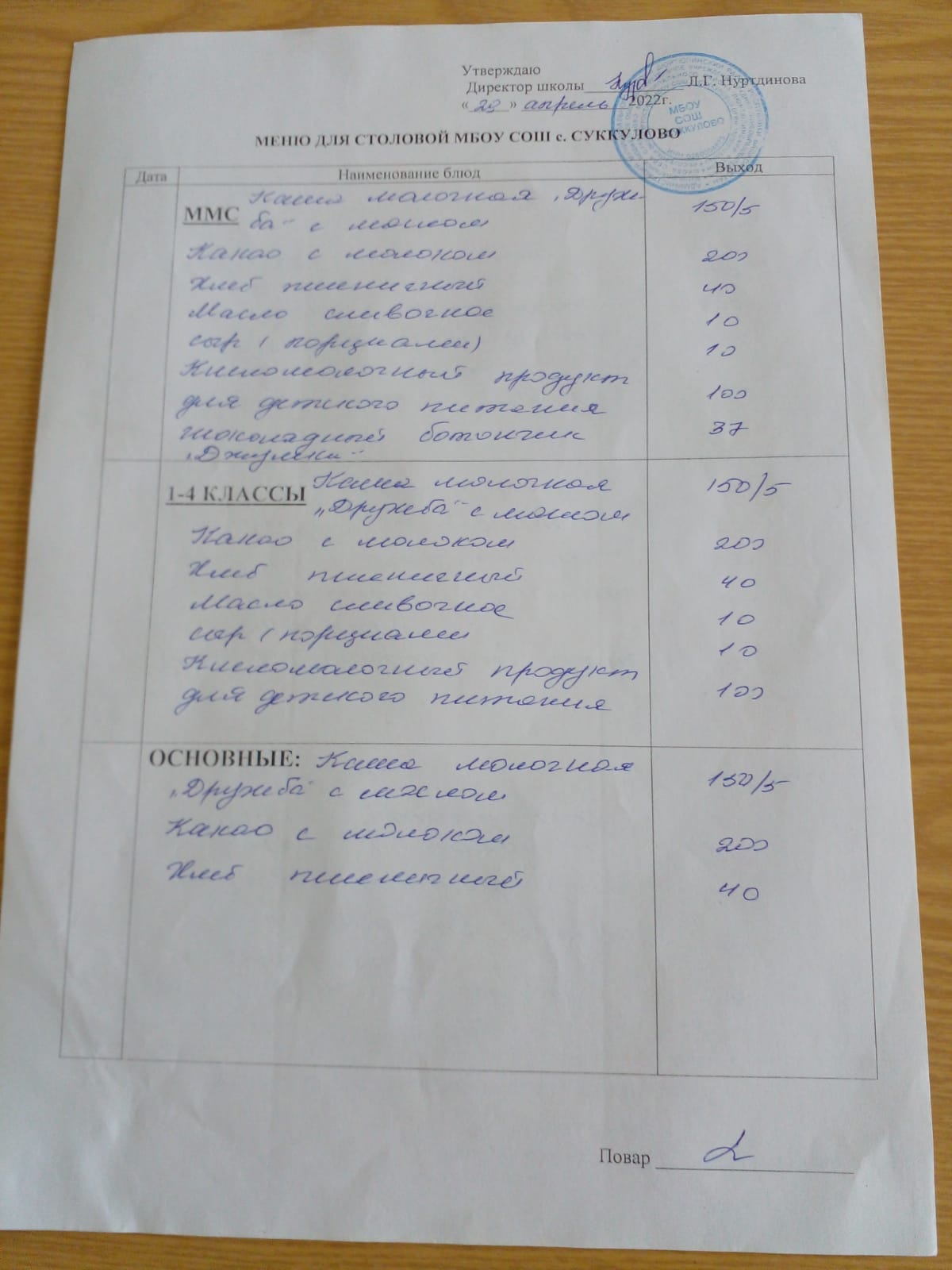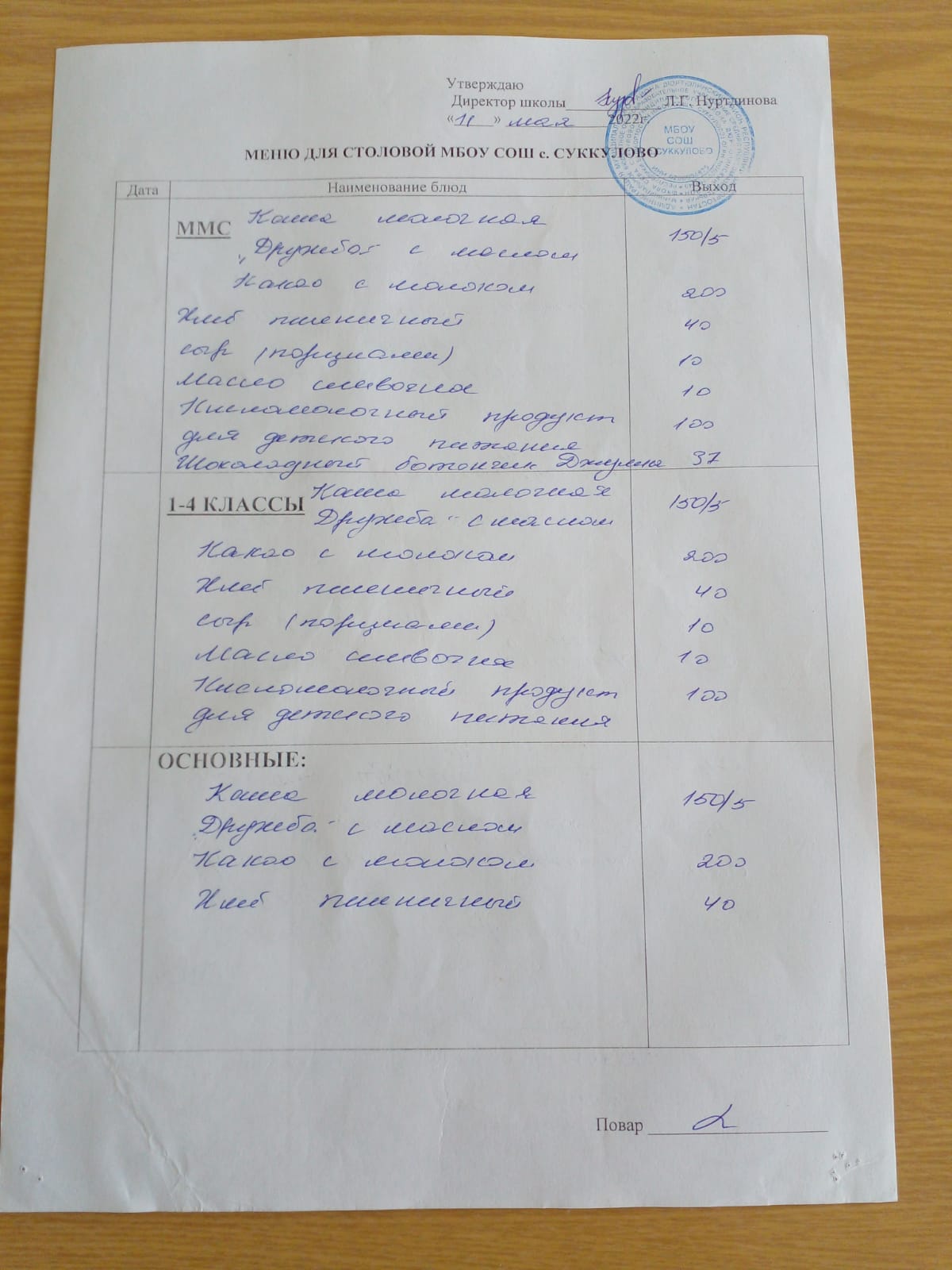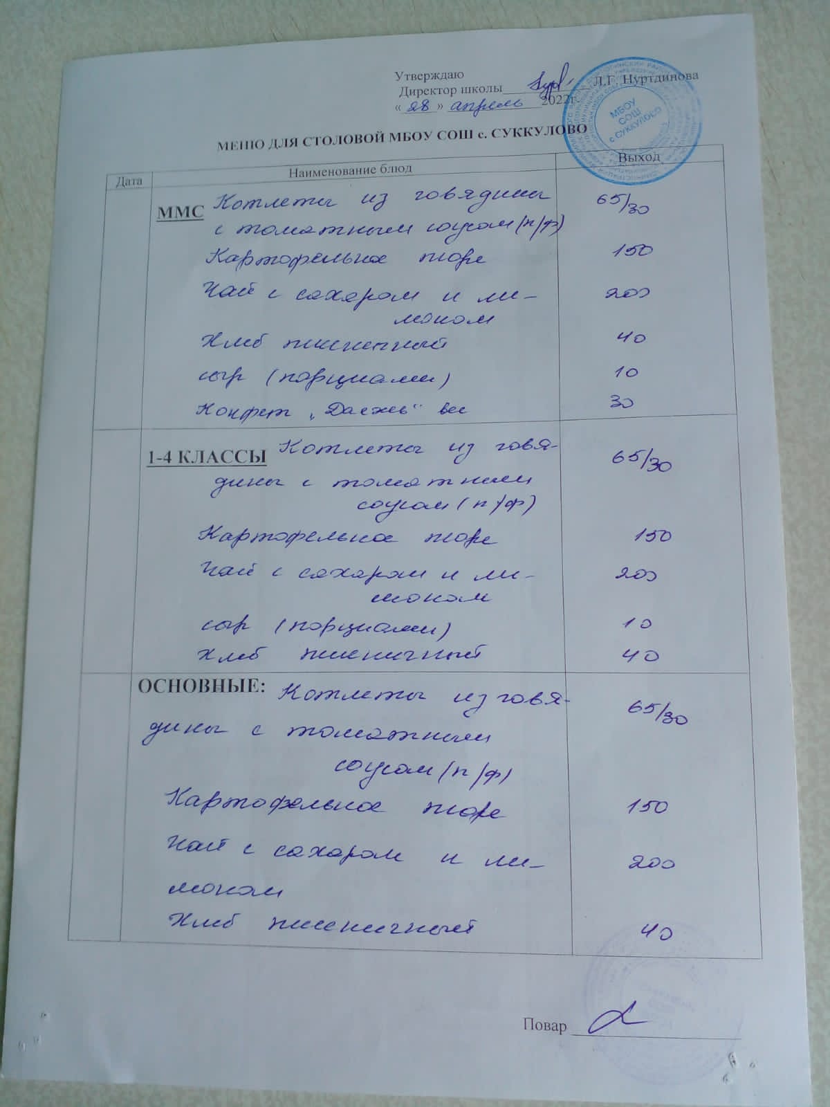 (Меню для обучающихся из ММС, 1-4 классов, основные)