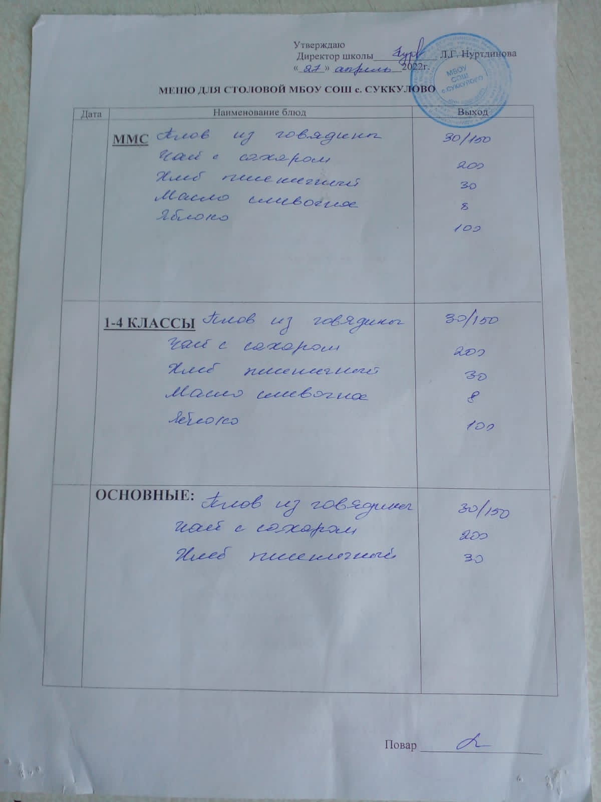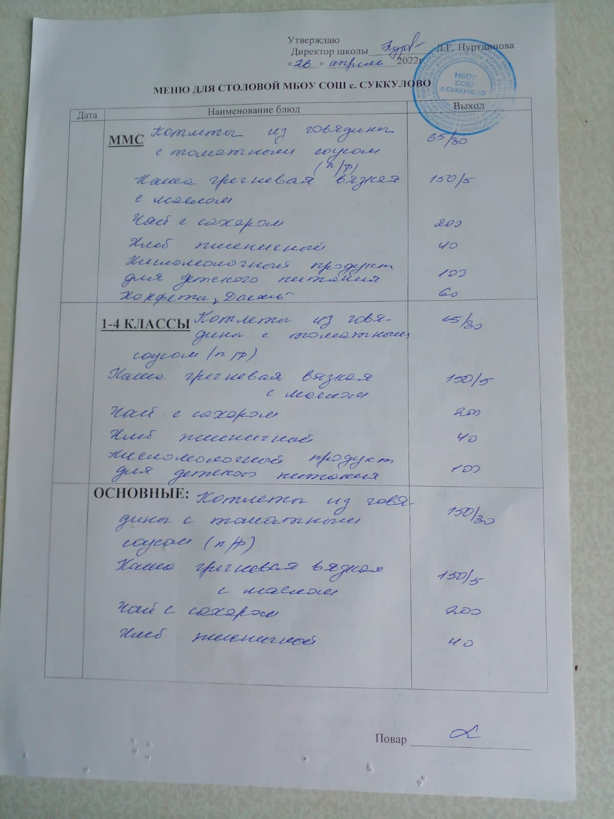 (Меню для обучающихся из ММС, 1-4 классов, основные)