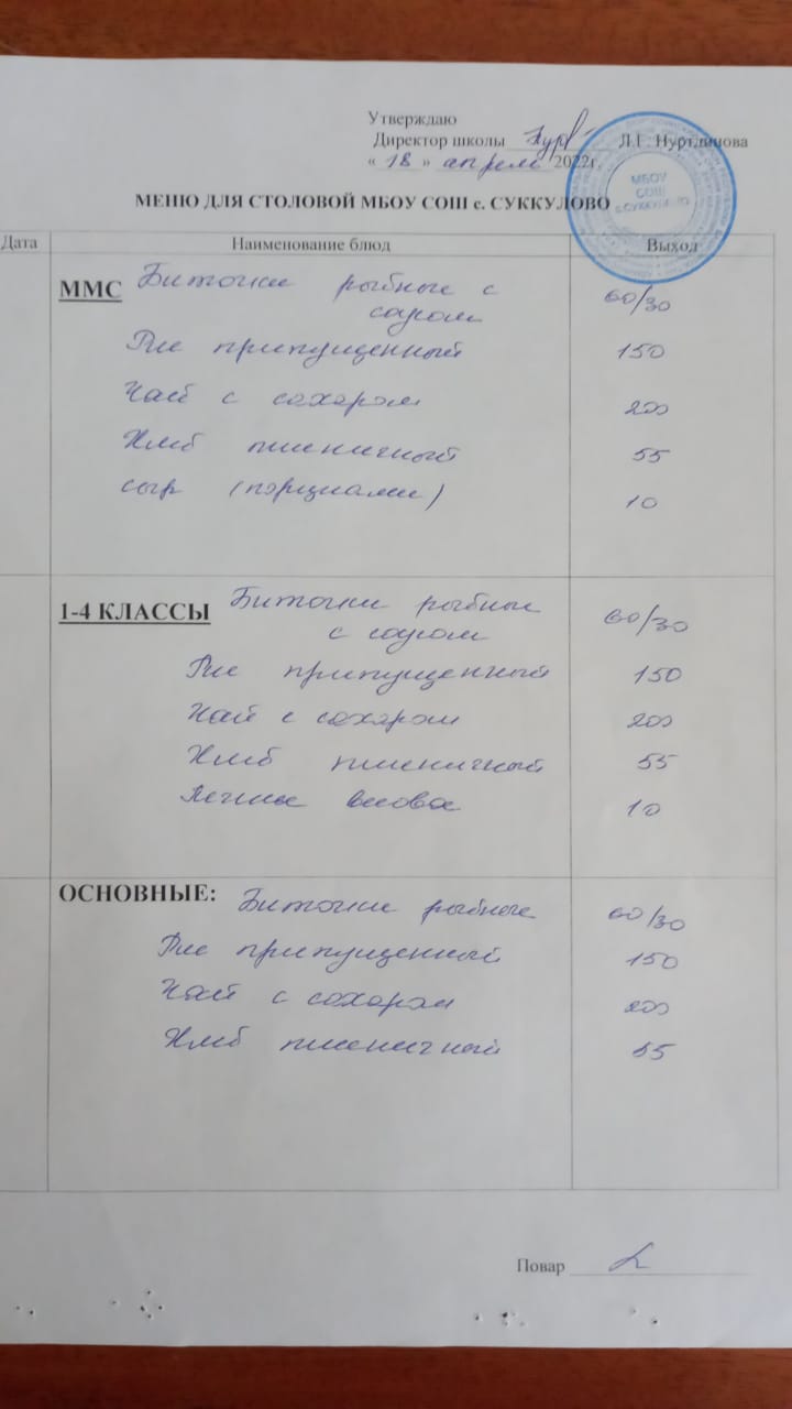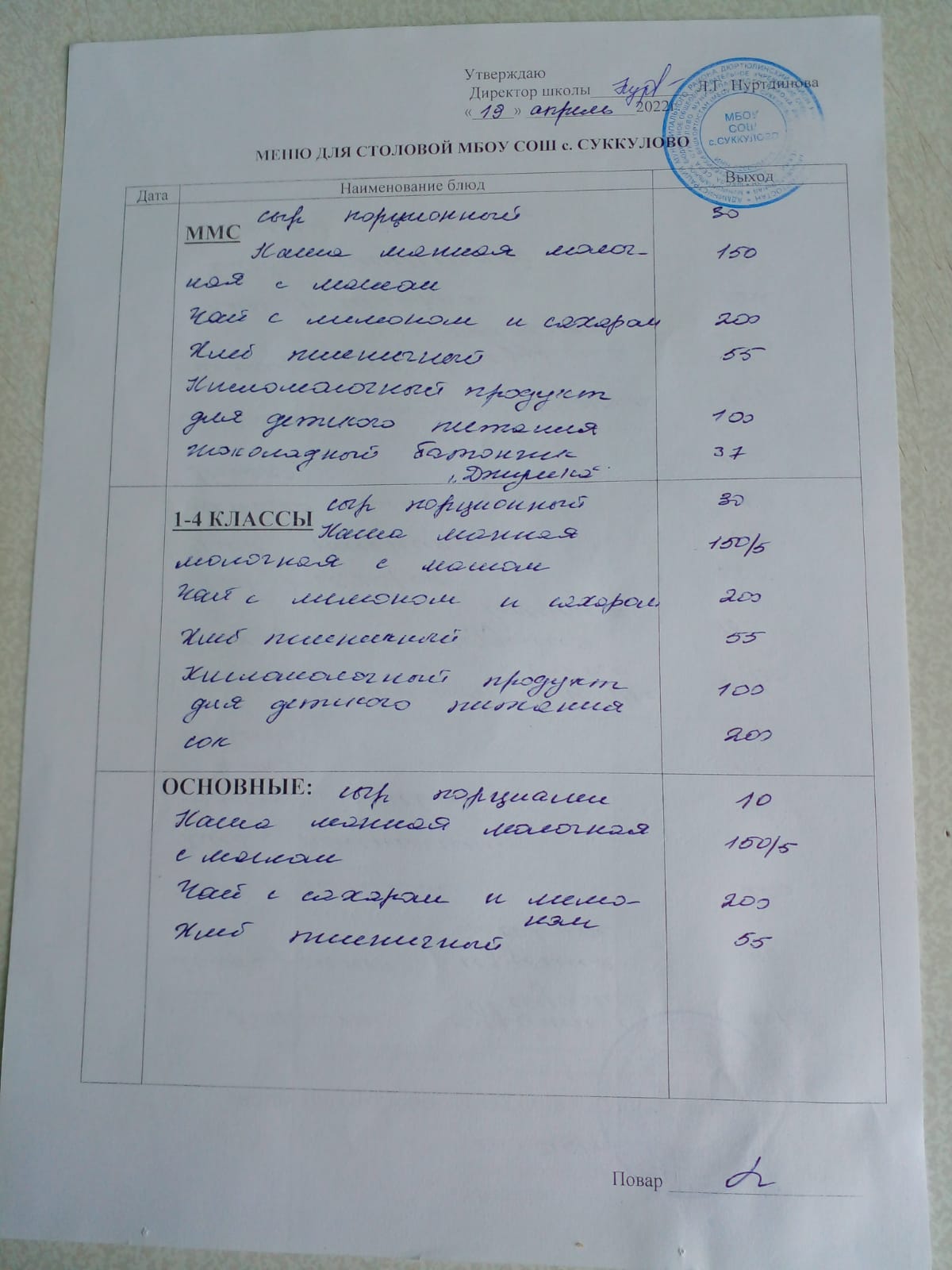 (Меню для обучающихся из ММС, 1-4 классов, основные)