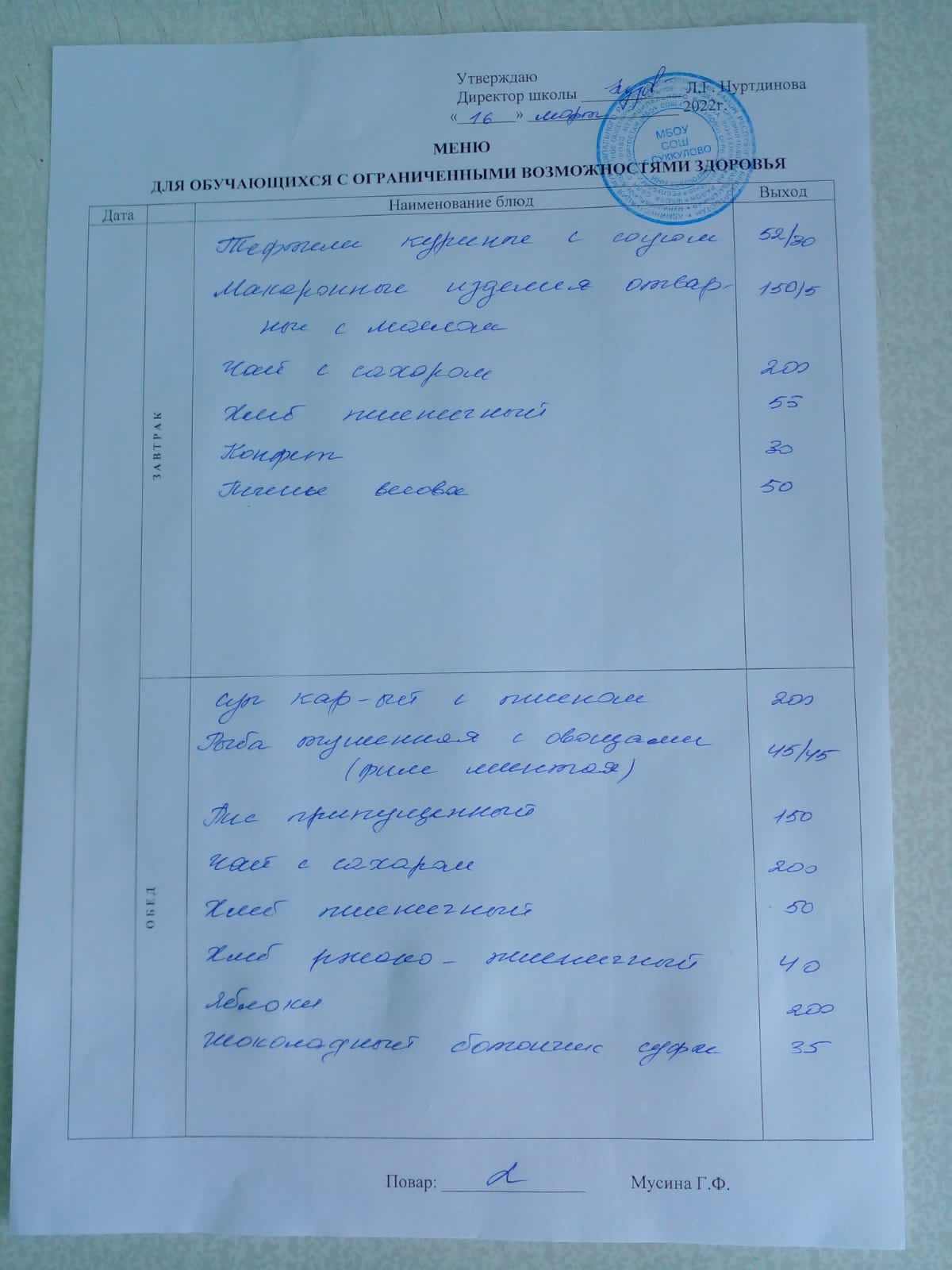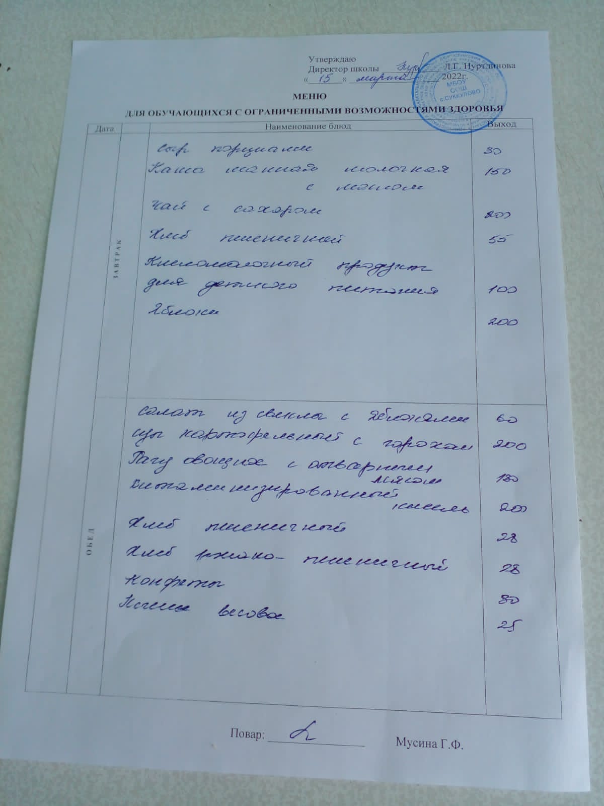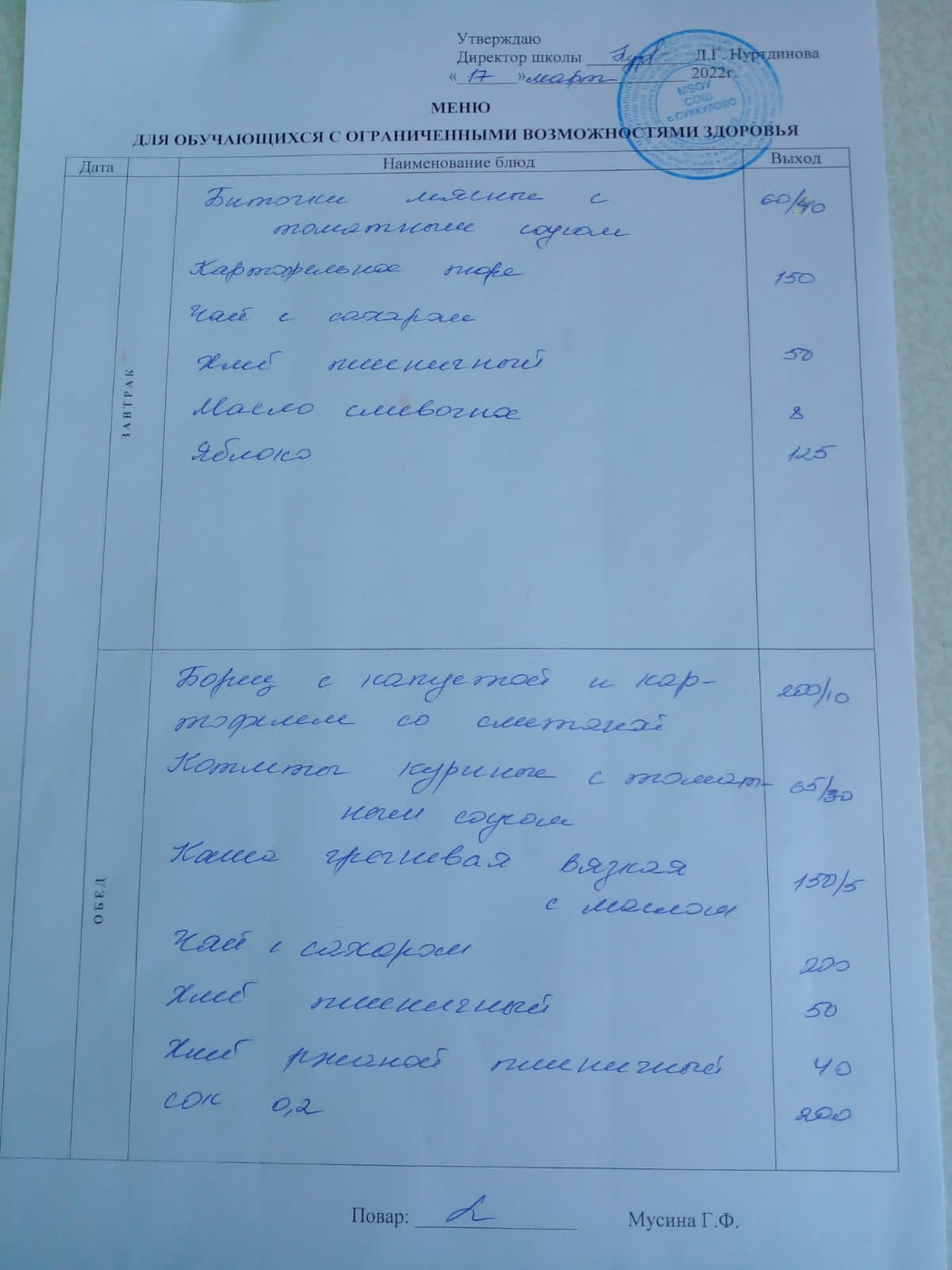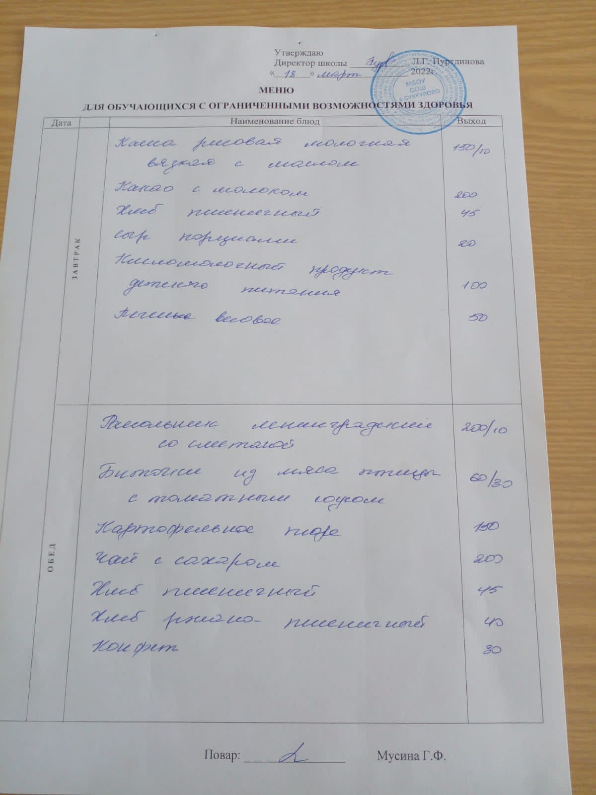 (Меню для обучающихся с ОВЗ)
