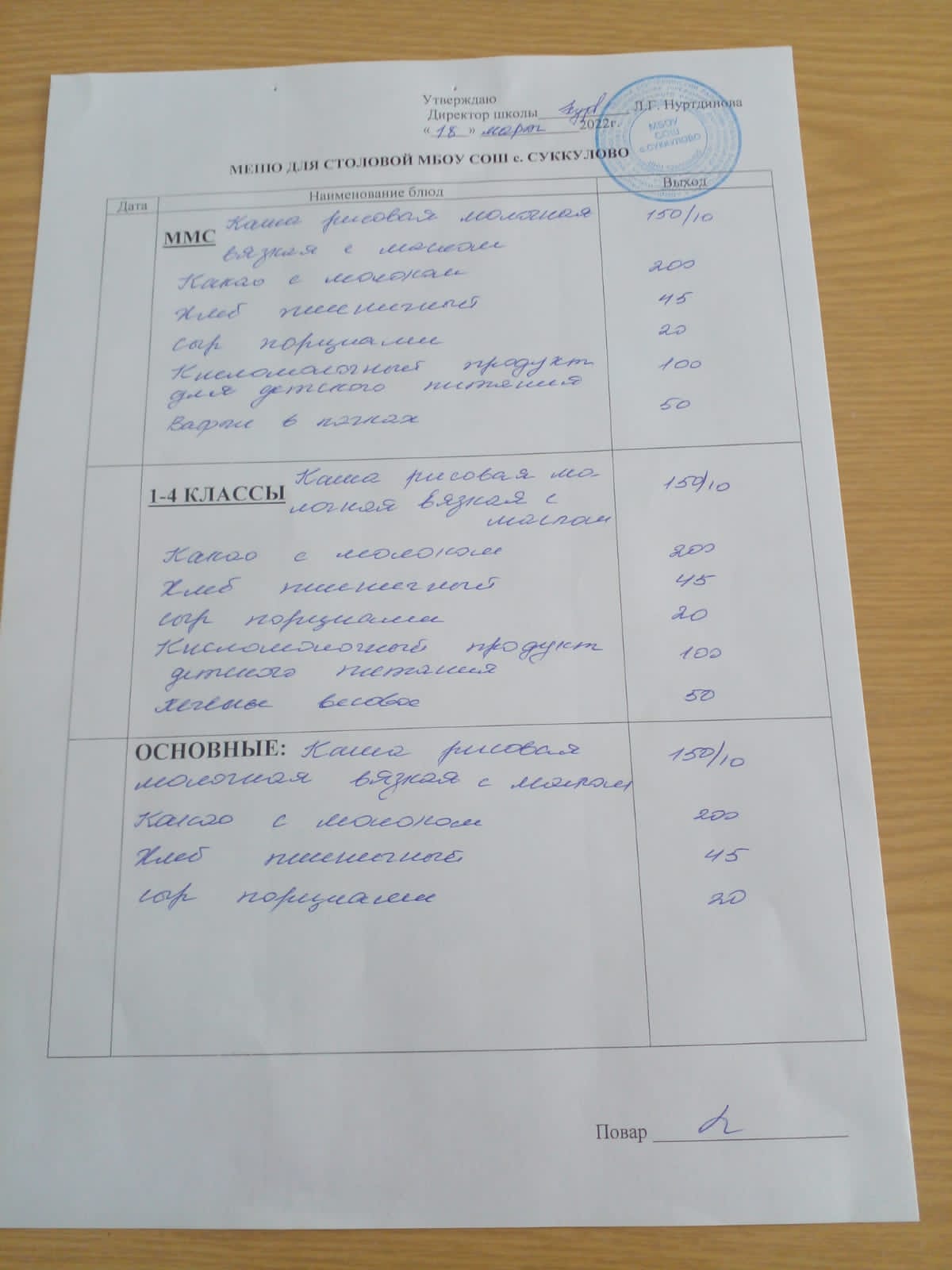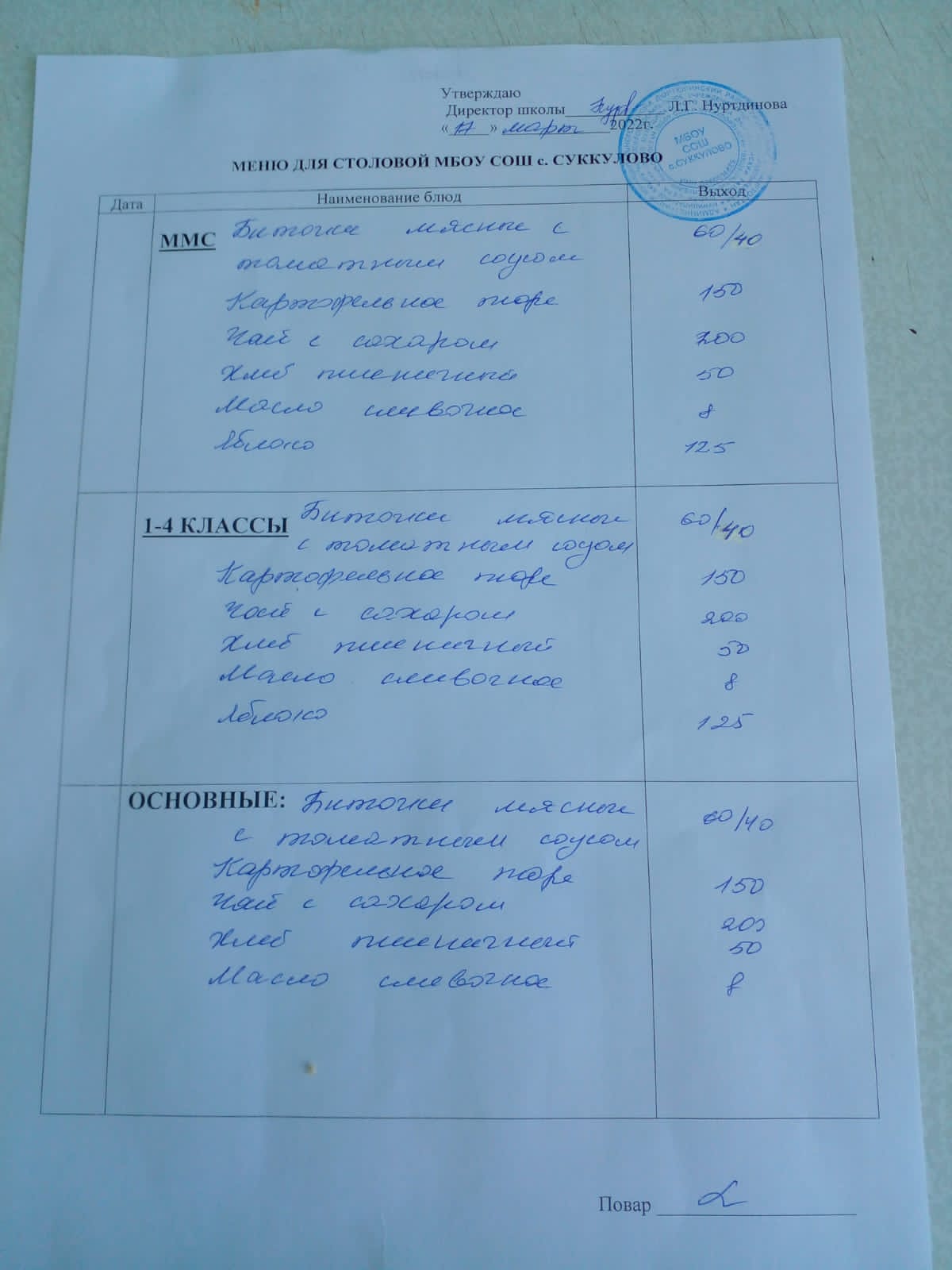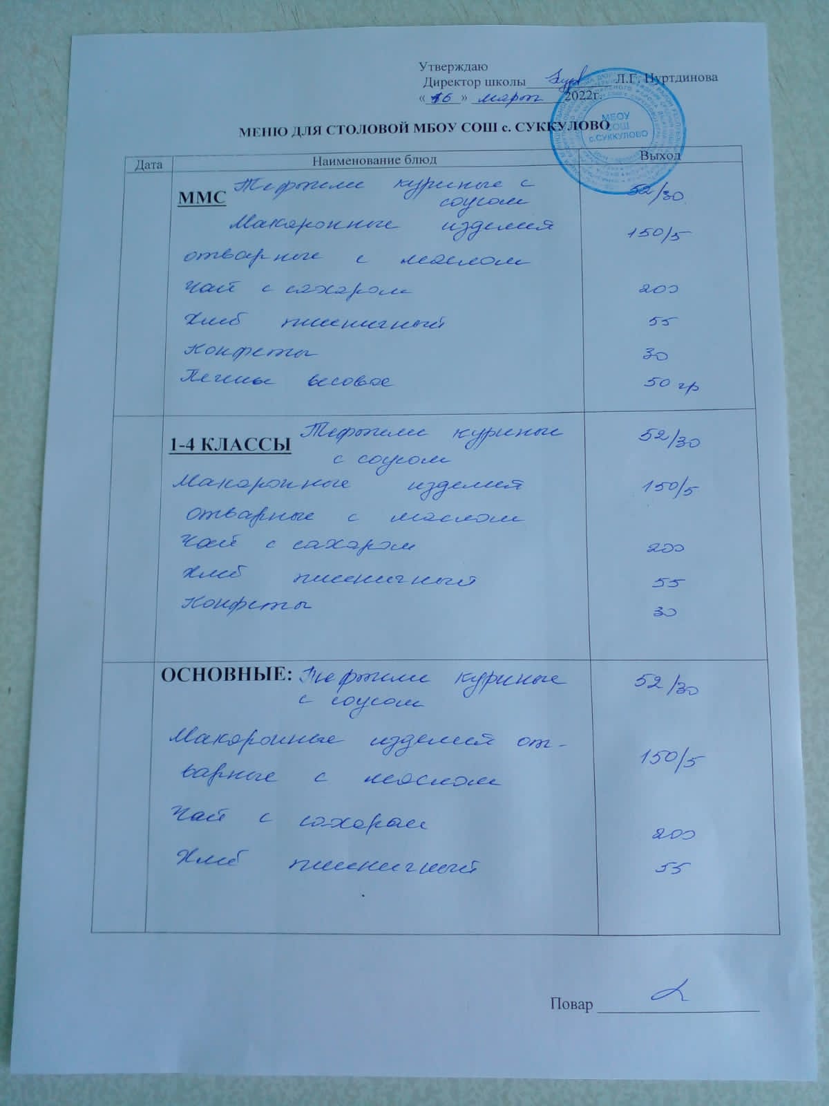 (Меню для обучающихся из ММС, 1-4 классов, основные)