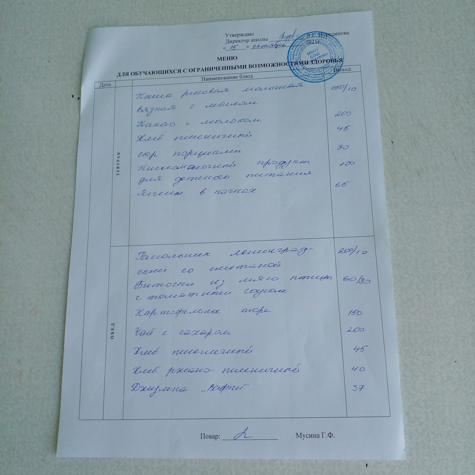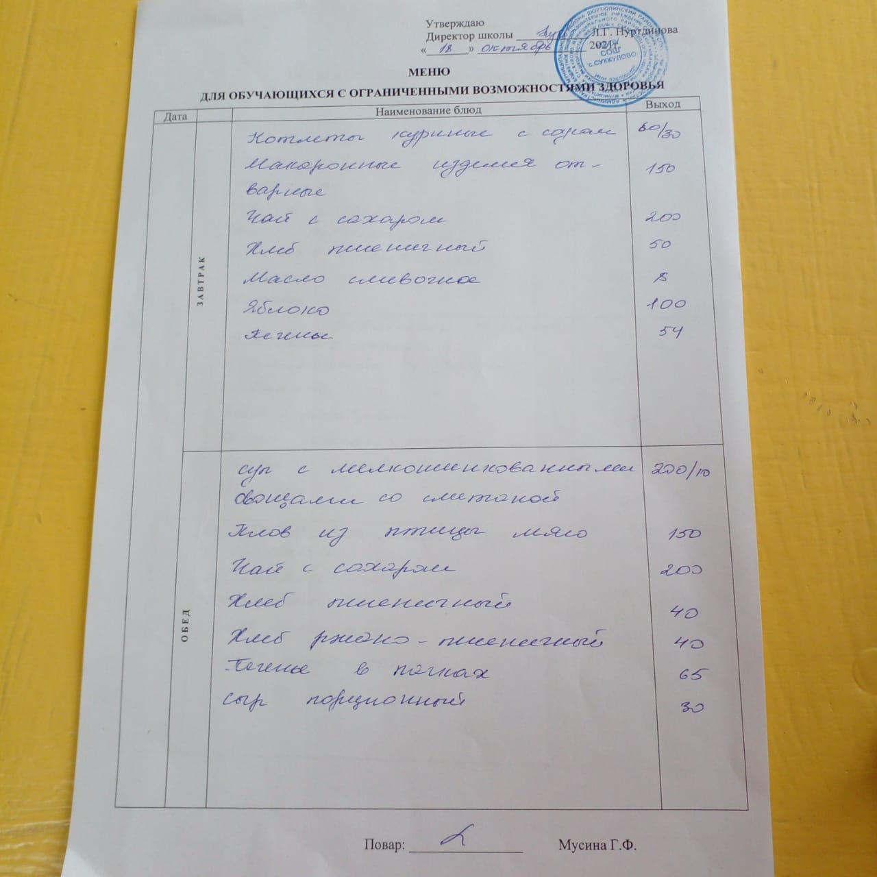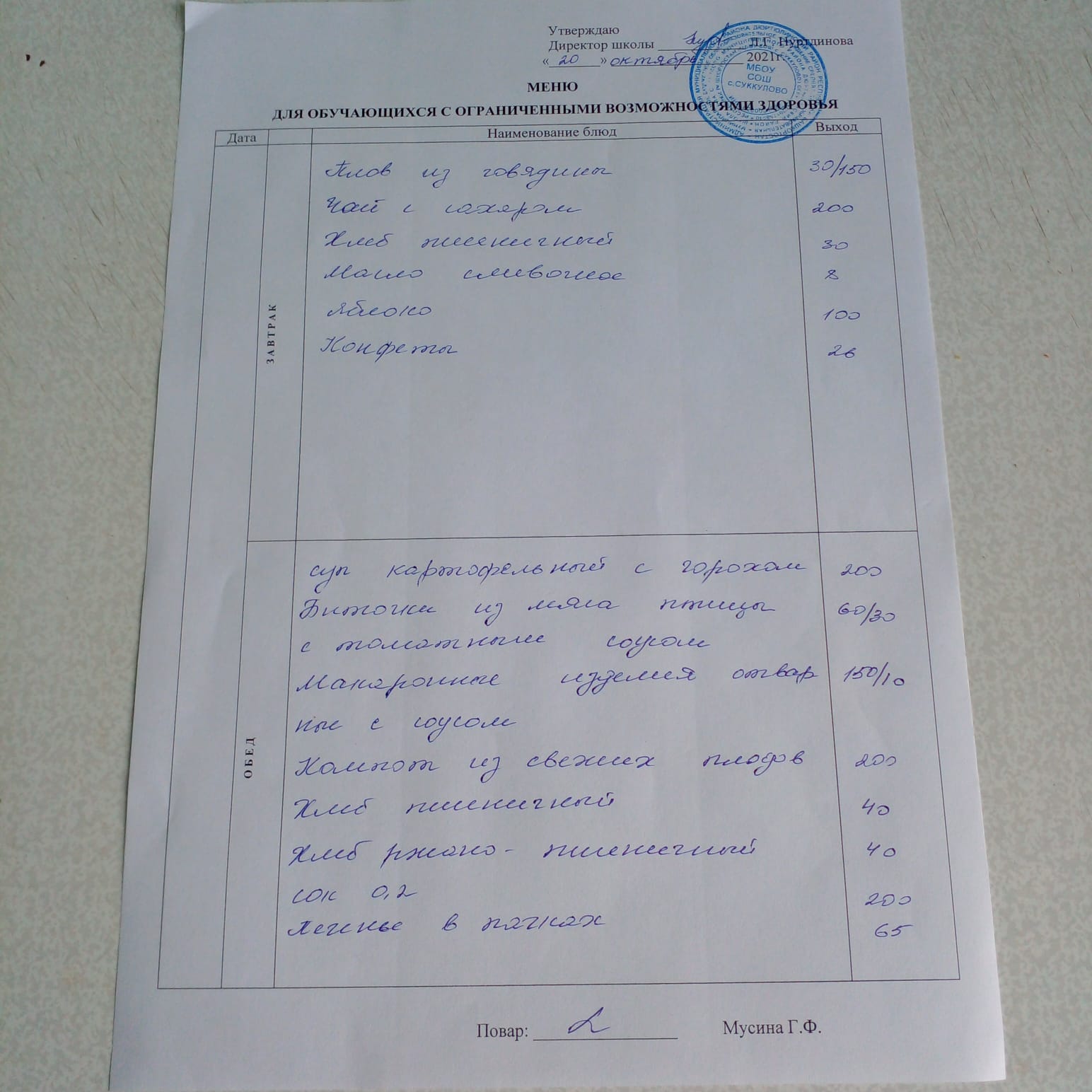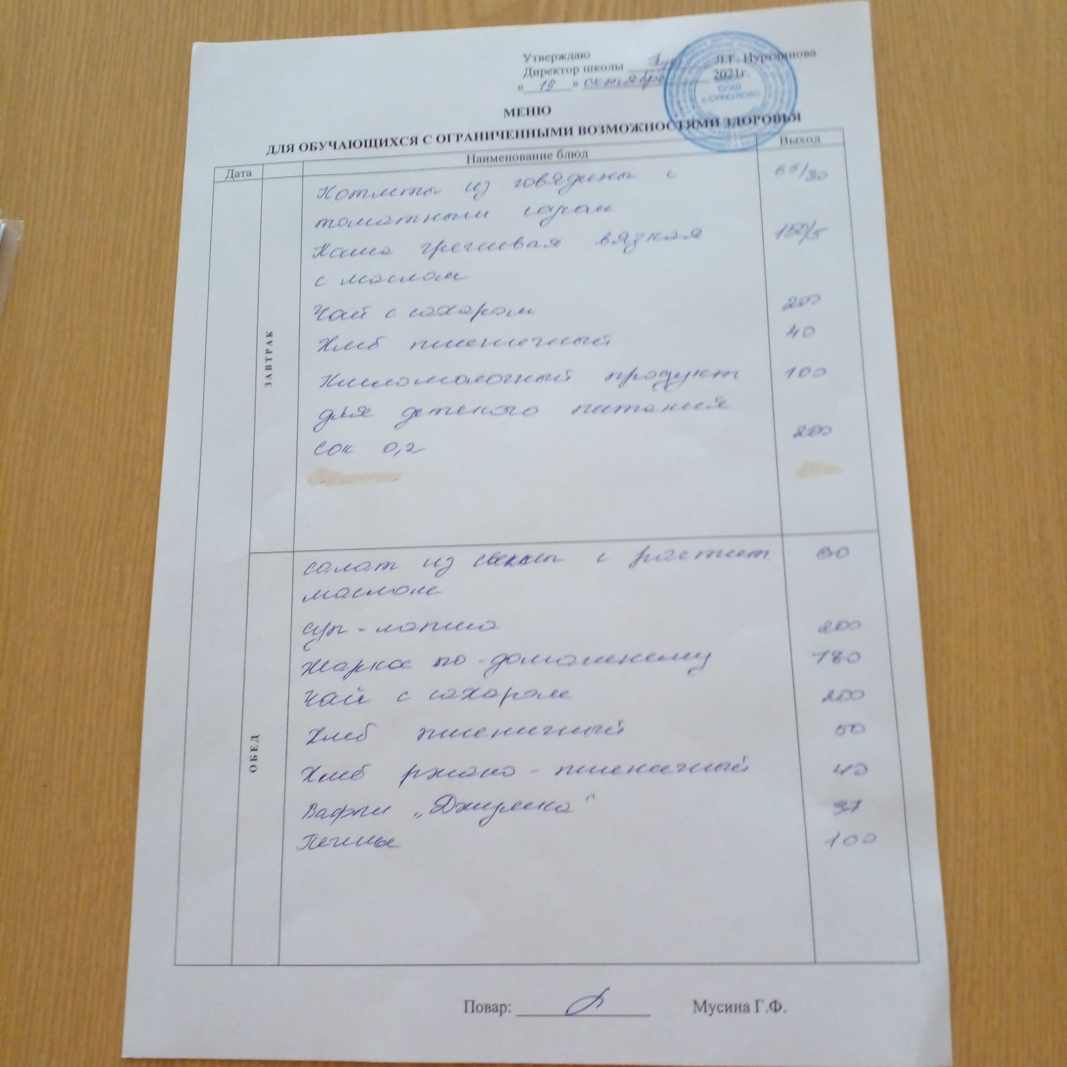 (Меню на 21.10.2021 для обучающихся с ОВЗ)