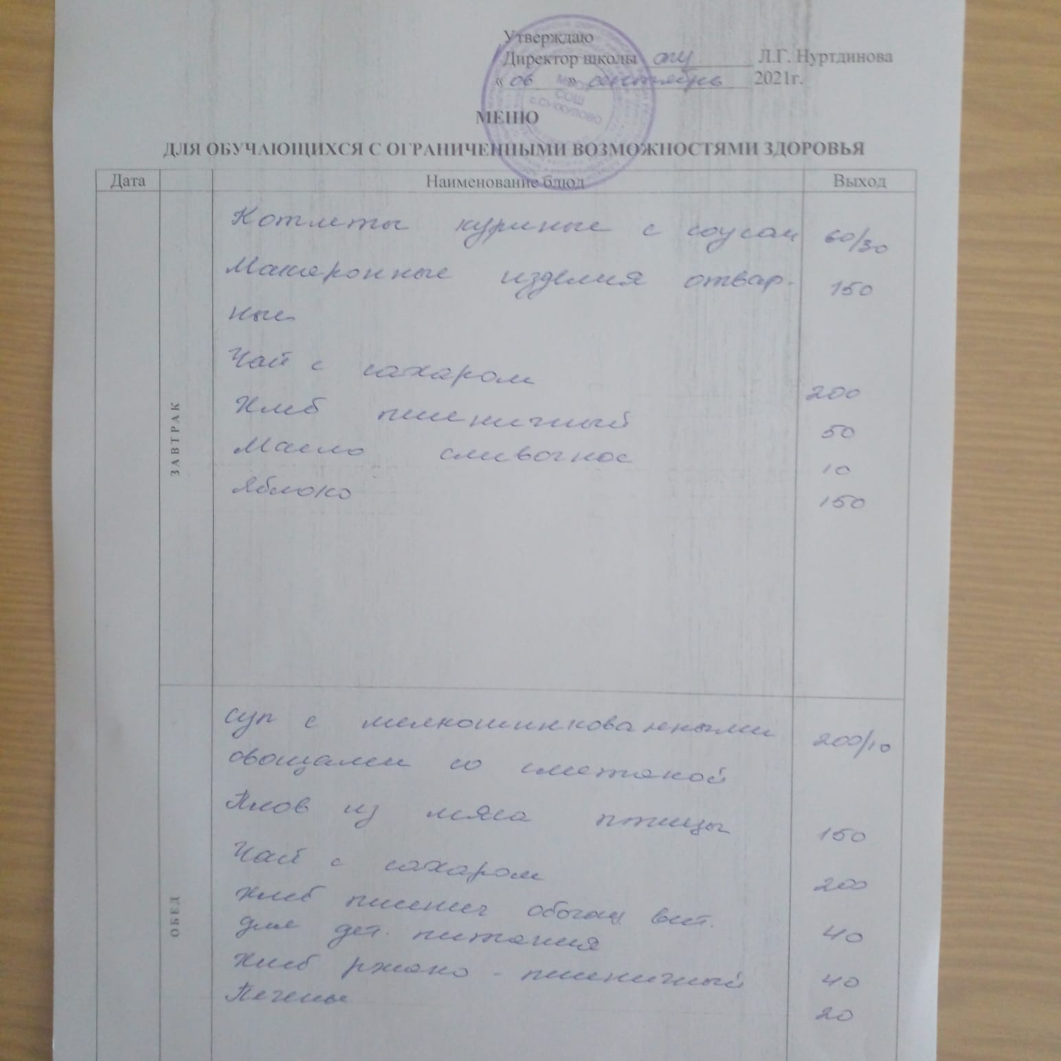 (Меню на 06.09.2021г. для обучающихся из многодетных малообеспеченных семей,питающихся за счет род.взносов)