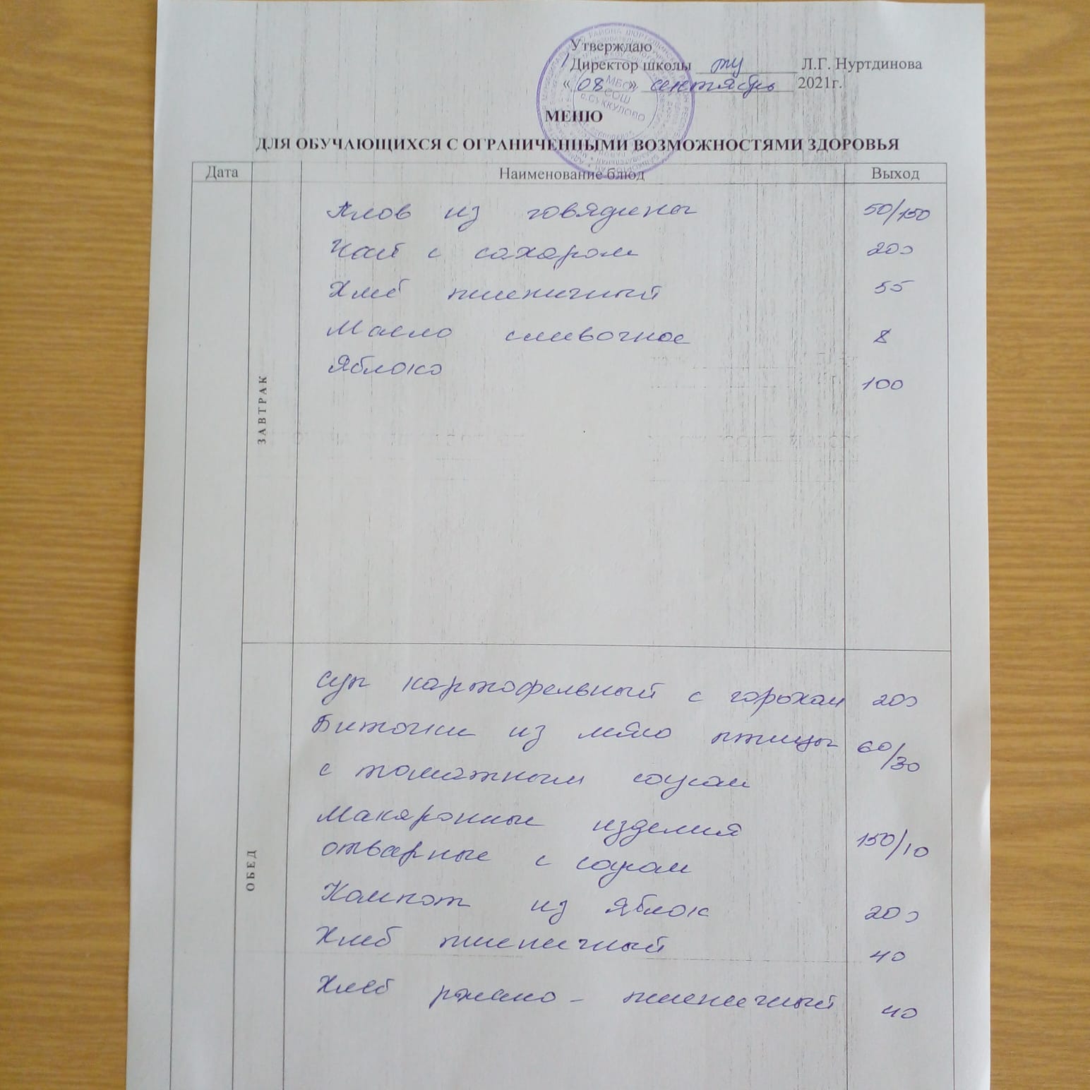 (Меню на 07.09.2021г. для обучающихся из многодетных малообеспеченных семей,питающихся за счет род.взносов)