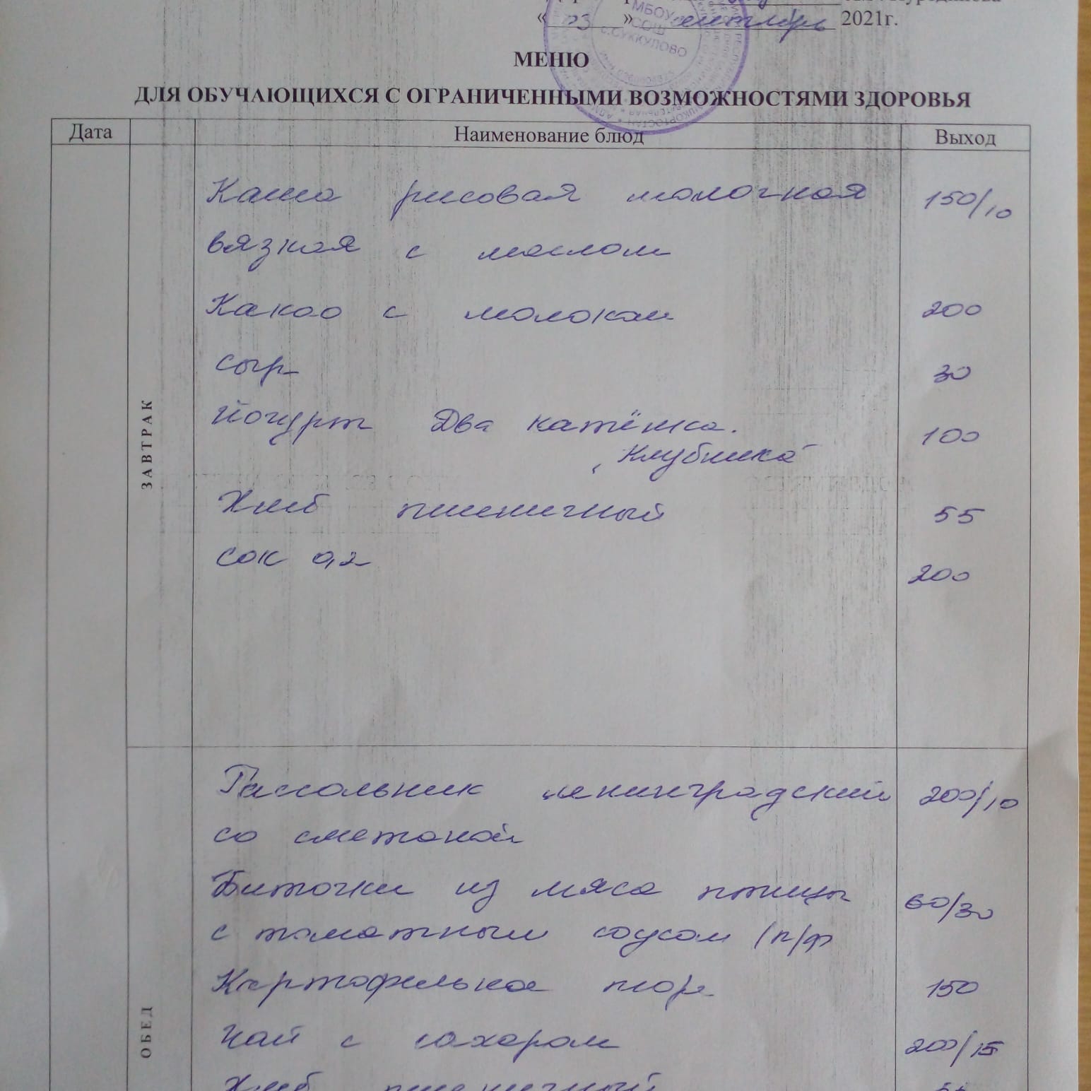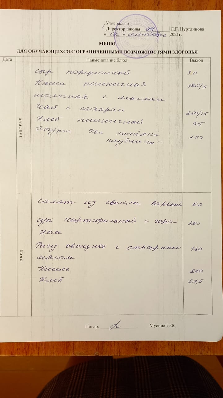 (Меню на 02.09.2021г. для детей с ОВЗ)